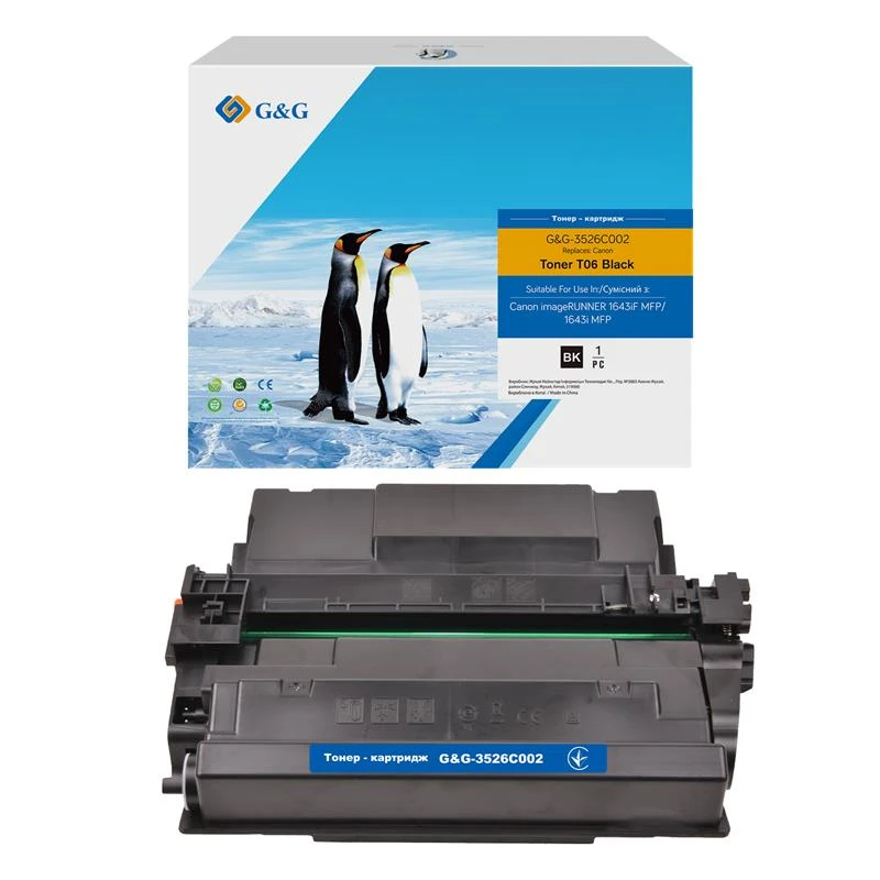 Картридж G&G 3526C002 створено для професійного офісного друку. Він забезпечує стабільну якість текстів і графіки, глибокий чорний колір і чіткість кожного рядка. Завдяки ресурсу до 18 000 сторінок, цей картридж оптимальний для щоденного інтенсивного навантаження. Його конструкція точно повторює оригінальний Canon T06, що гарантує повну сумісність із пристроями серії Canon imageRUNNER 1643. Використання високотехнологічного тонера забезпечує рівномірне нанесення без фону чи смуг. Завдяки екологічним рішенням G&G частина компонентів виготовлена з перероблених матеріалів, що зменшує вплив на довкілля.