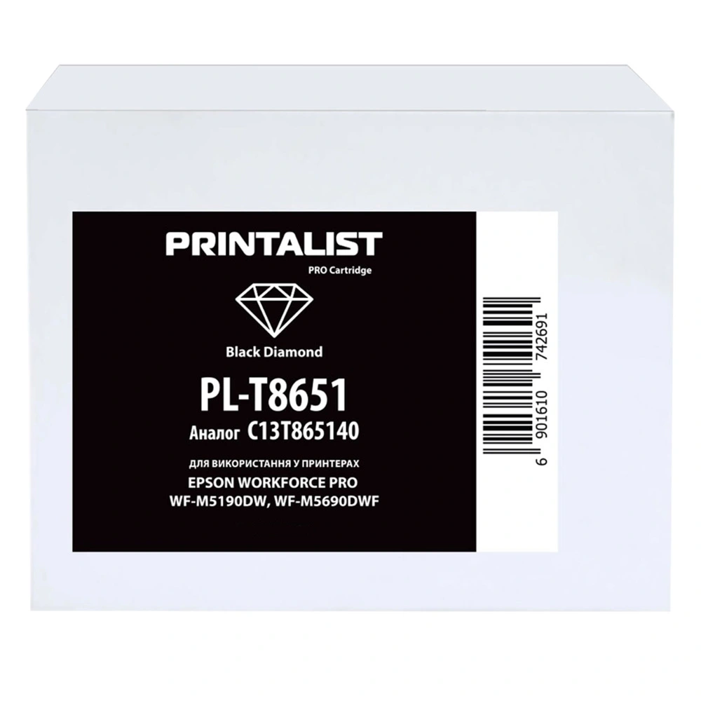 Картридж PRINTALIST для Epson WorkForce Pro WF-M5690/WF-M5190 аналог C13T865140 Black (PL-T8651)