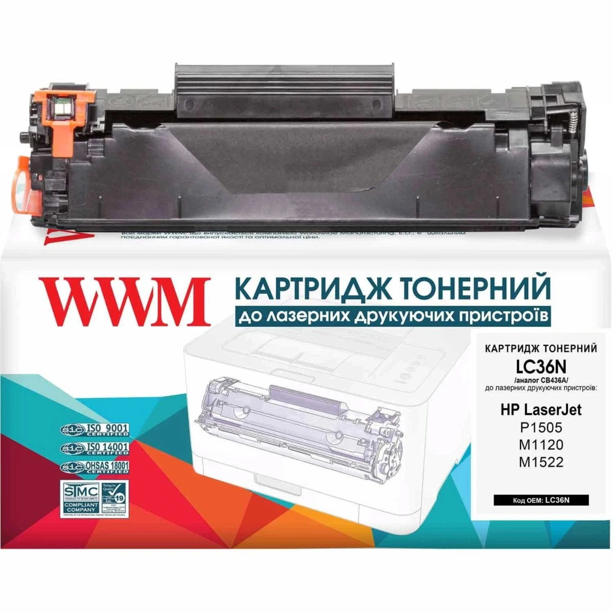 Картридж тон. WWM для HP LJ P1505/M1120/1522 аналог CB436A Black ( 2000 ст.) (LC36N)