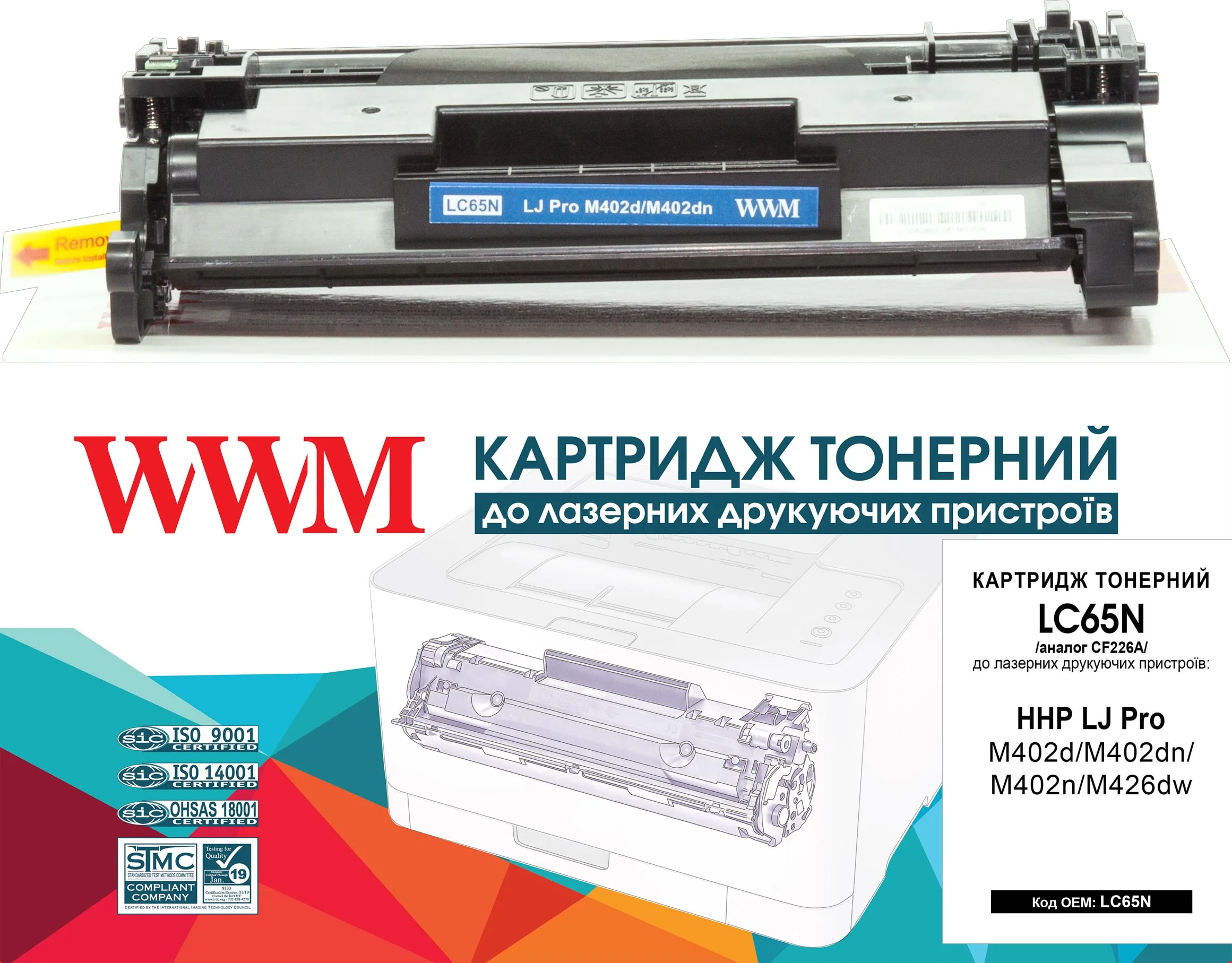 Картридж тон. WWM для HP LJ Pro M402d/M402dn/M402n/M426dw аналог CF226A Black ( 3100 ст.) (LC65N)