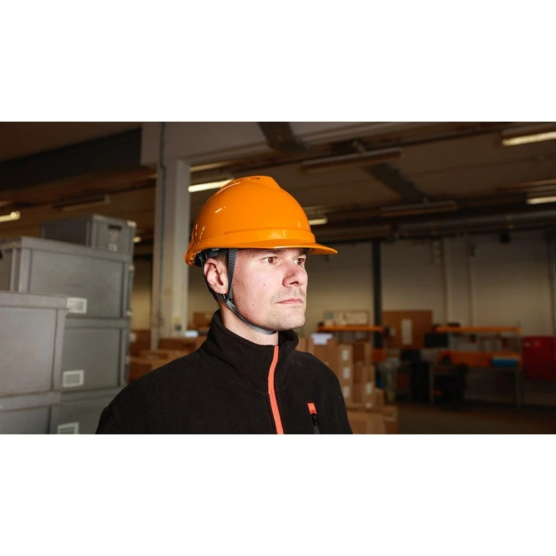 Каска промислова з підборідним ременем, помаранчева 97-225 від NEO - це гарантований захист і комфорт голови. Каска призначена для працівників, які піддаються ризику отримання травм. Стане в нагоді при роботі на риштуваннях, на складі та при земляних роботах
