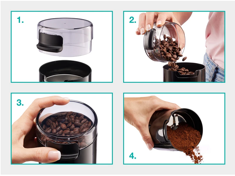 З простою у використанні кавомолкою у вас більше не буде потреби виходити з дому, щоб випити чашечку кави. Прилад не тільки дуже простий, а й надзвичайно компактний, а отже, його можна розмістити будь-де на кухні та користуватися ним щодня. Кавомолка має знімну камеру, що дає змогу висипати кавові зерна безпосередньо в кавоварку.