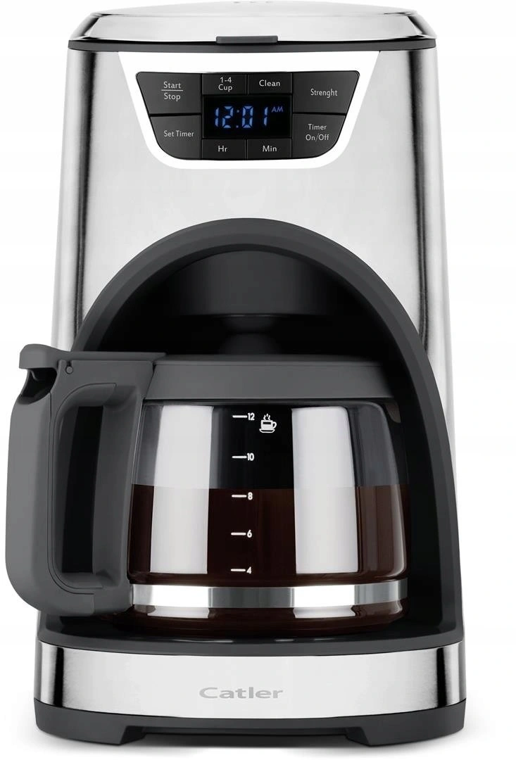 Кавоварка Catler CM4010 - це крапельна кавоварка з великим, зручним LED дисплеєм, який дозволяє легко налаштовувати час подачі свіжої кави, її інтенсивність та кількість чашок. Вона має об’єм конви 1.8 літра та функцію підтримки температури до 40 хвилин, а також можливість вибору інтенсивності кави та налаштування таймера. Крім того, кавоварка оснащена системою попередження про необхідність чищення та має потужність 1000 Вт, що забезпечує якісне приготування кави