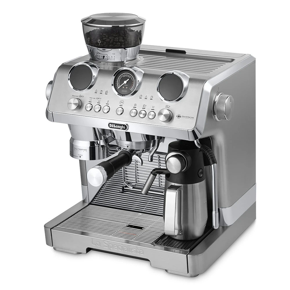 Кавоварка DeLonghi EC 9885 M з серії La Specialista Maestro - Cold Brew. Потужність 1450 Вт. Тиск: 19 бар. Тип роботи: механіка. Вбудований капучинатор. Автокаппучинатор. Підігрів чашок. 4 крема-фільтра: 1-й для таблетованої кави або на одну порцію кави, 2-й на дві порції кави, 3-й для приготування 1 порції холодної кави, 4-й для приготування двох порцій холодної кави. Тип кави: зерна, мелена і чалди. Об’єм контейнера для води: 2,5 л. Матеріал корпусу: метал. Піддон для крапель. Максимальна висота чашки: 14 см. Автоматичне відключення. Автоматичне очищення від накипу. Контейнер для кави. Жорнова кавомолка з вибором ступеня помелу. Професійний холдер. Анти-вапняні гранули. Рідина для видалення накипу.