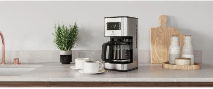 Кавоварка Electrolux крапельна 1.375л, мелена, дисплей, програмований таймер, метал