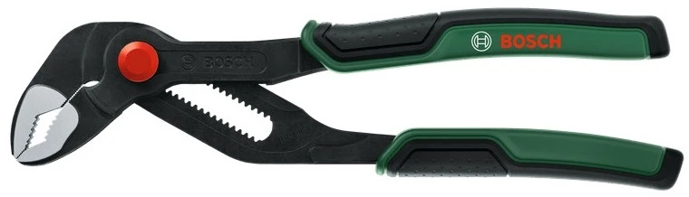 Переставні кліщі Bosch довжиною 180 мм призначені для сантехнічних і монтажних робіт. Максимальний розмір захоплення становить 40 мм, а кнопковий механізм із 19 положеннями забезпечує швидке та точне регулювання. Робоча частина виготовлена зі сталі 55CS з індукційною термообробкою до 60 HRC. Ергономічні рукоятки з TPR-покриттям підвищують комфорт і безпеку під час роботи.