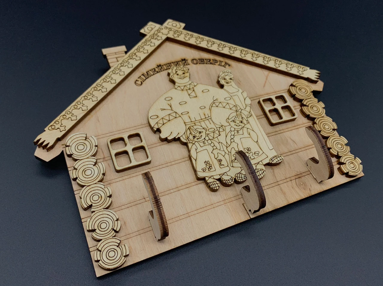 Ключниця настінна дерев'яна, 18х14см, "Сімейний оберіг", у формі будинку 3 гачки