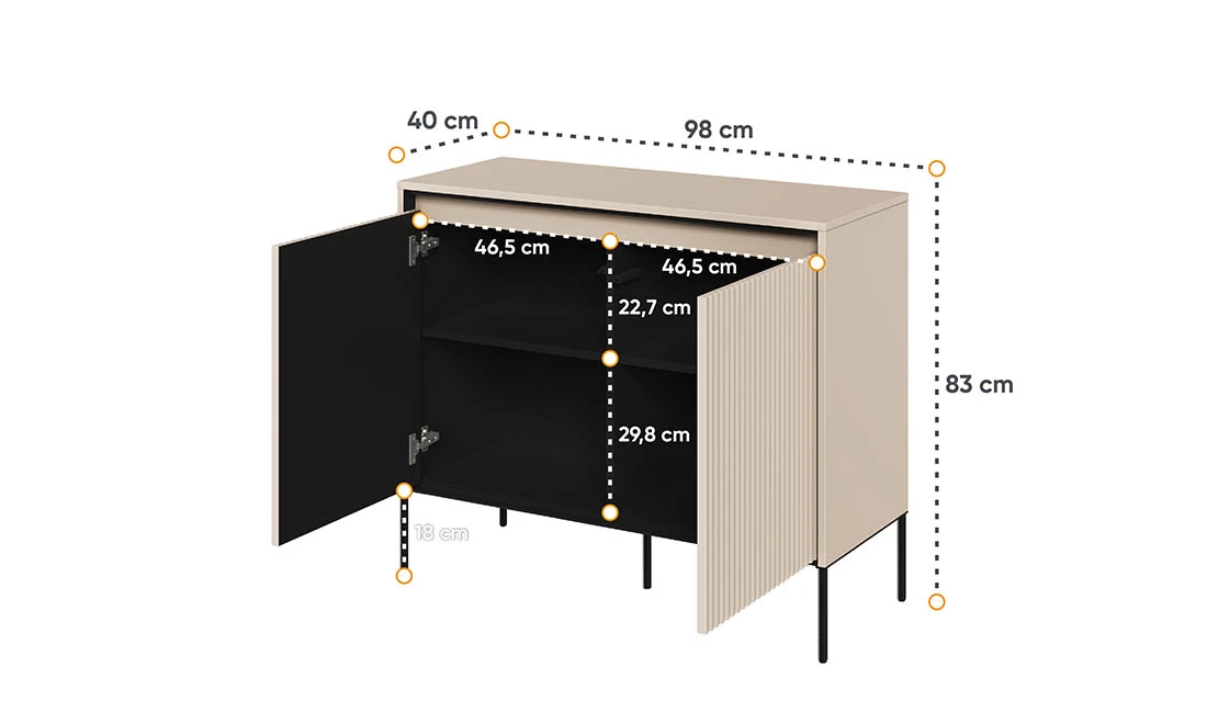 Комод 2х дверний Тренд у бежевому кольорі - це елегантний та стильний елемент інтер'єру, який поєднує в собі модний дизайн та функціональність.
