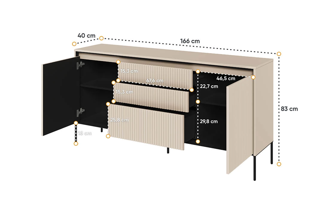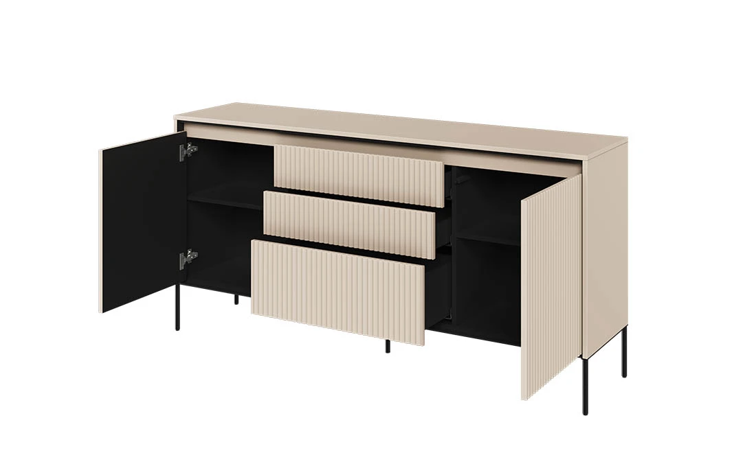 - 3 шухляди по центру, 2 дверей з боків: Забезпечують багатофункціональний простір для зберігання.