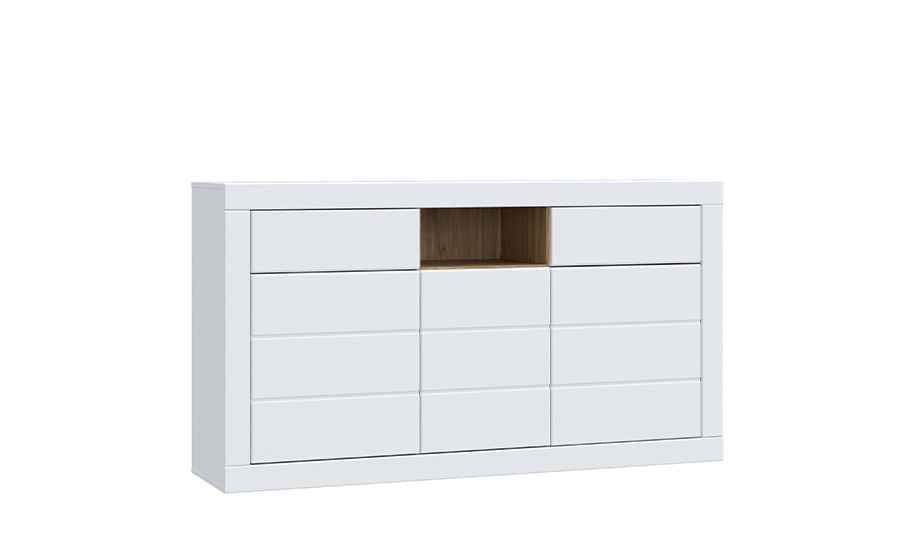 Комод Лефкада поєднує в собі сучасний мінімалізм та практичність, створюючи зручне місце для зберігання з акцентом на естетику.