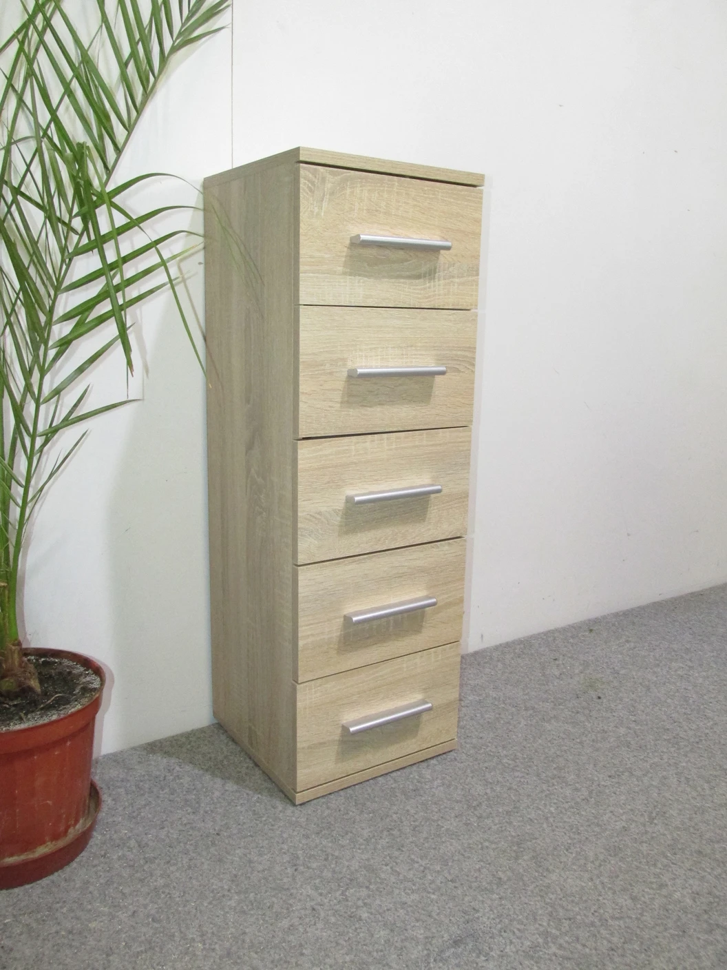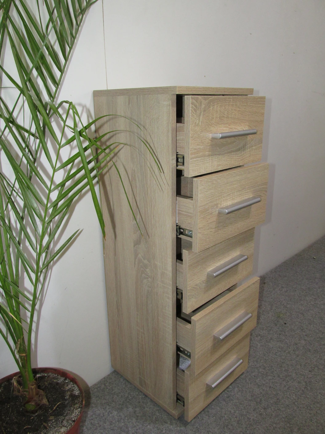 Виготовлений із високоякісної ламінованої ДСП від виробника Swiss Krono, цей комод має високу зносостійкість та довговічність. Завдяки прямій формі фасаду і компактним розмірам, комод ідеально підходить для розміщення в маленьких кімнатах або офісах, а ніжки забезпечують стабільність і естетичний вигляд конструкції.