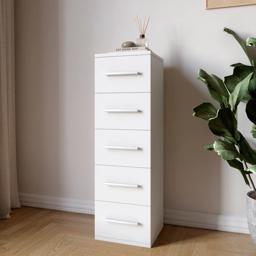 Комод 5 шухляд М-ЗОН Джеко 300 Німфея Альба — це компактний і стильний меблевий елемент, який ідеально підходить для зберігання дрібних предметів у будь-якому інтер'єрі. Його елегантний колір Німфея Альба додає легкості та свіжості, а п'ять висувних шухляд забезпечують зручний доступ до ваших речей, дозволяючи легко організувати простір.