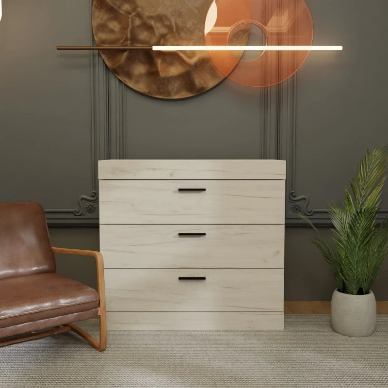 Відкрийте для себе комод Еверест на 3 ящики Соната-1, який поєднує в собі елегантний дизайн та практичність. Його розміри ідеально підходять для будь-якого інтер'єру, а стильний дуб крафт білий додає приміщенню свіжості та сучасного вигляду. Завдяки продуманій конструкції, ви зможете з легкістю організувати свій простір, зберігаючи речі в порядку.