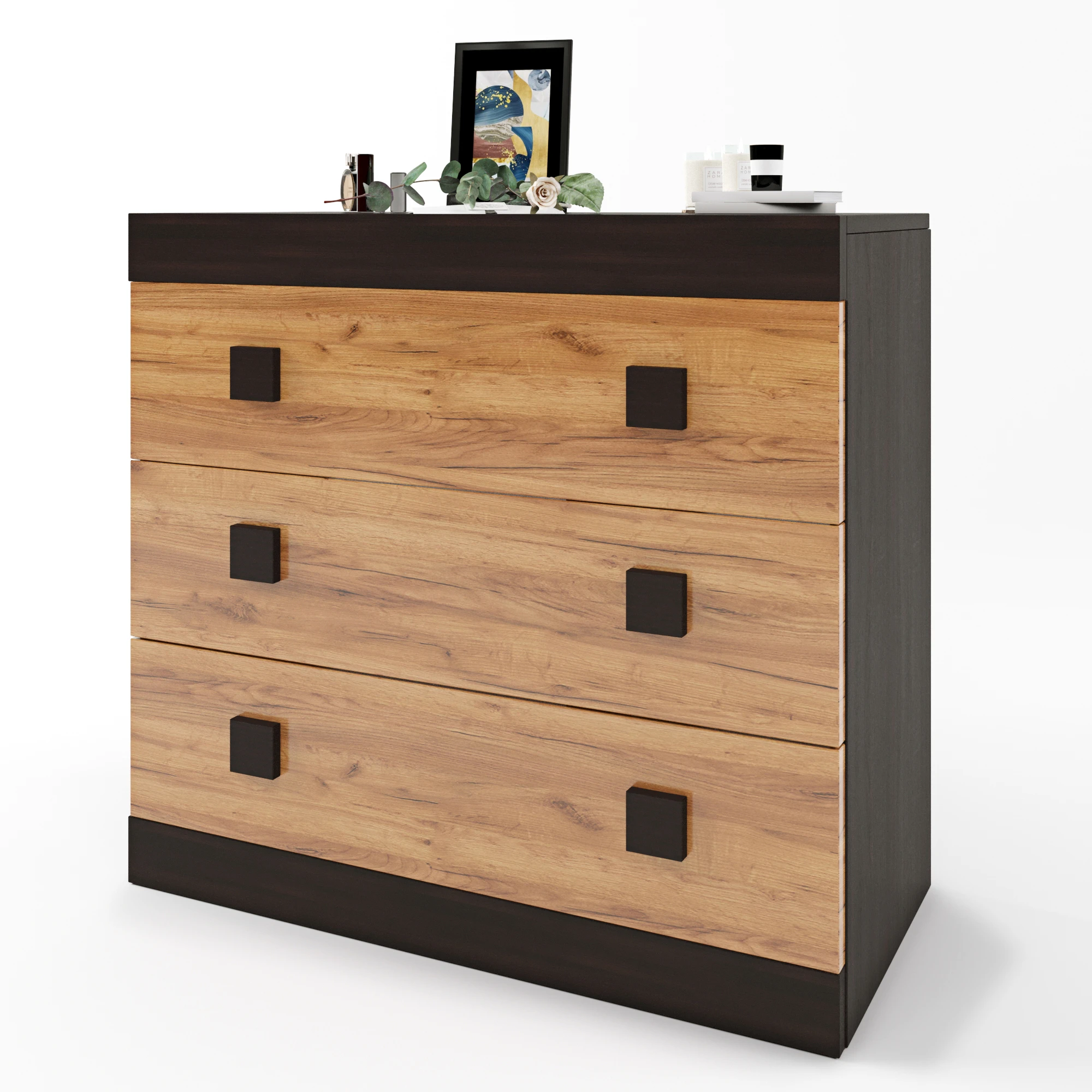 Комод Еверест на 3 ящики Соната-1 80х38х75 венге темний + дуб крафт золотий (DTM-2045)