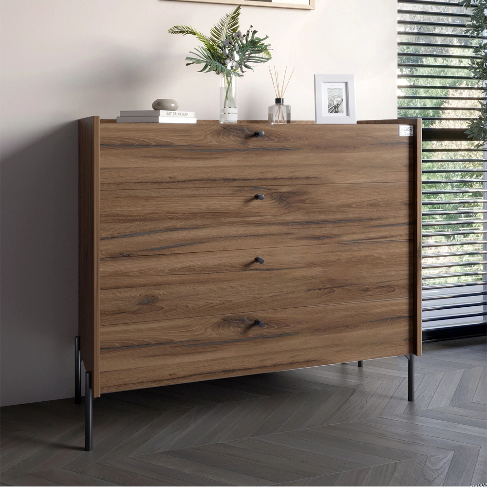Комод із 4 шухлядами LION Wood із чорними ніжками 100х90х45 см Дуб Ліворно (LION-042979)