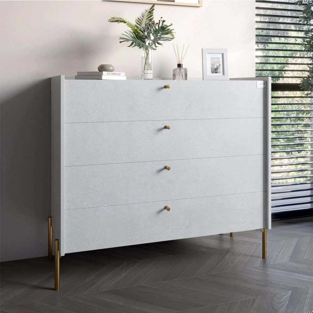 Комод із 4 шухлядами LION Wood із золотими ніжками 100х90х45 см Бетон style (LION-042959)