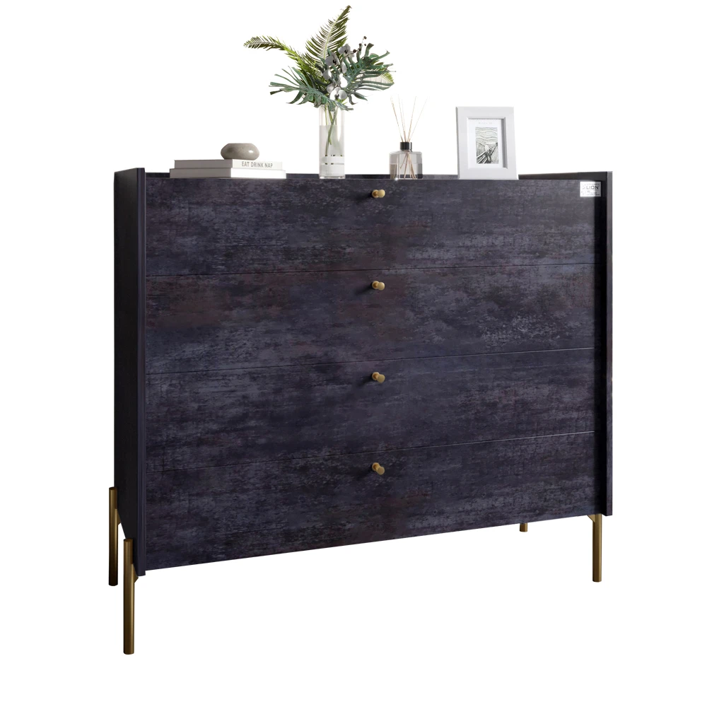 Комод із 4 шухлядами LION Wood із золотими ніжками 100х90х45 см Бетон темний (LION-042960)