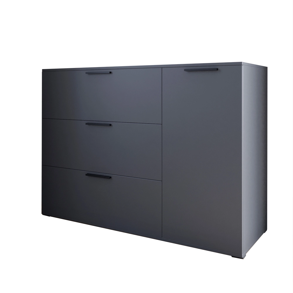 Комод LION Краш з трьома висувними шухлядами та закритими полицями Антрацит (LION-044141) ТОП