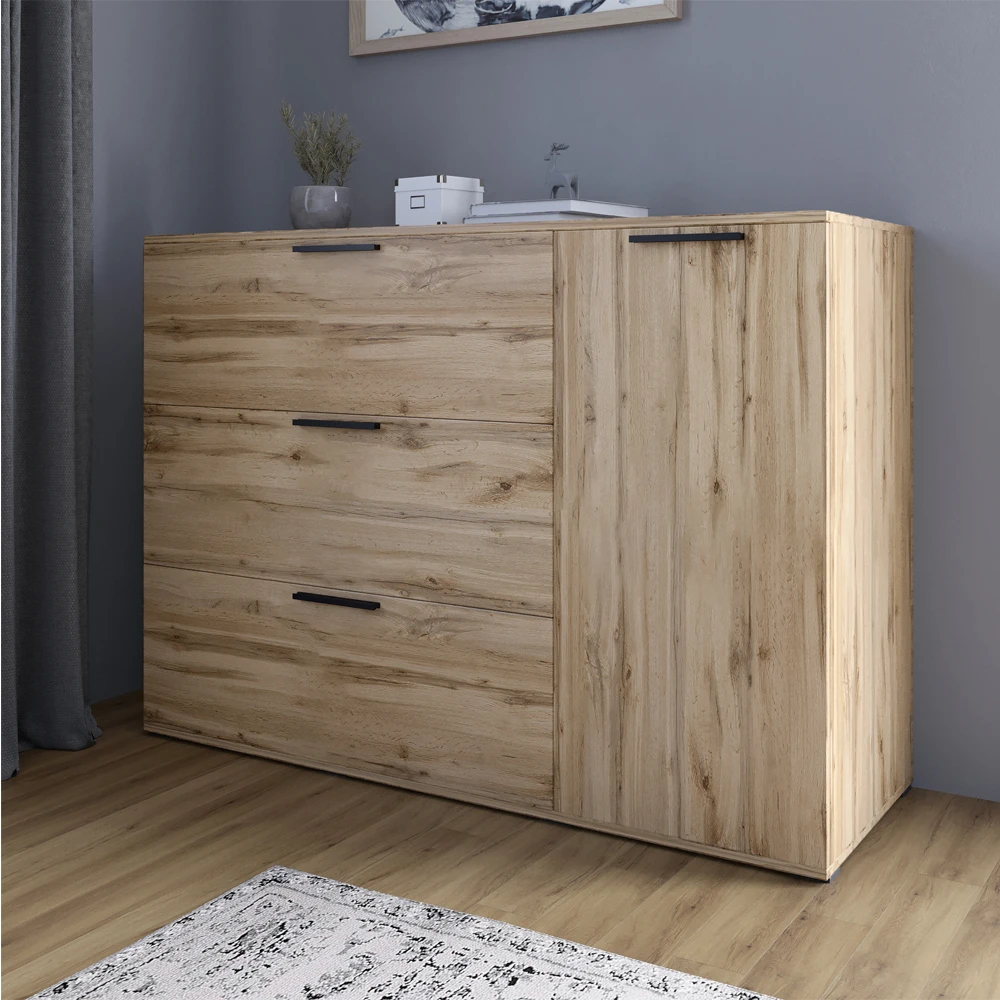 Комод LION Краш з трьома висувними шухлядами та закритими полицями Дуб аппалачі (LION-044155)