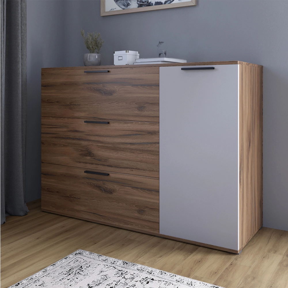 Комод LION Краш з трьома висувними шухлядами та закритими полицями Дуб ліворно/Кашемір (LION-044156)