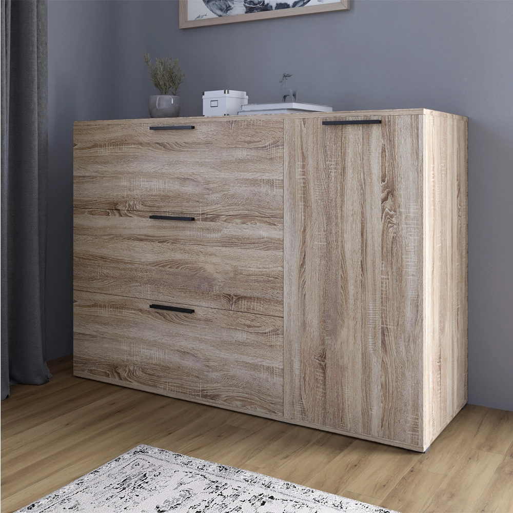 Комод LION Краш з трьома висувними шухлядами та закритими полицями Дуб сонома трюфель (LION-044152)