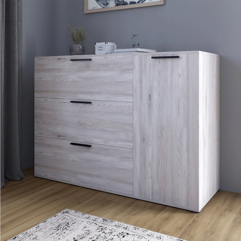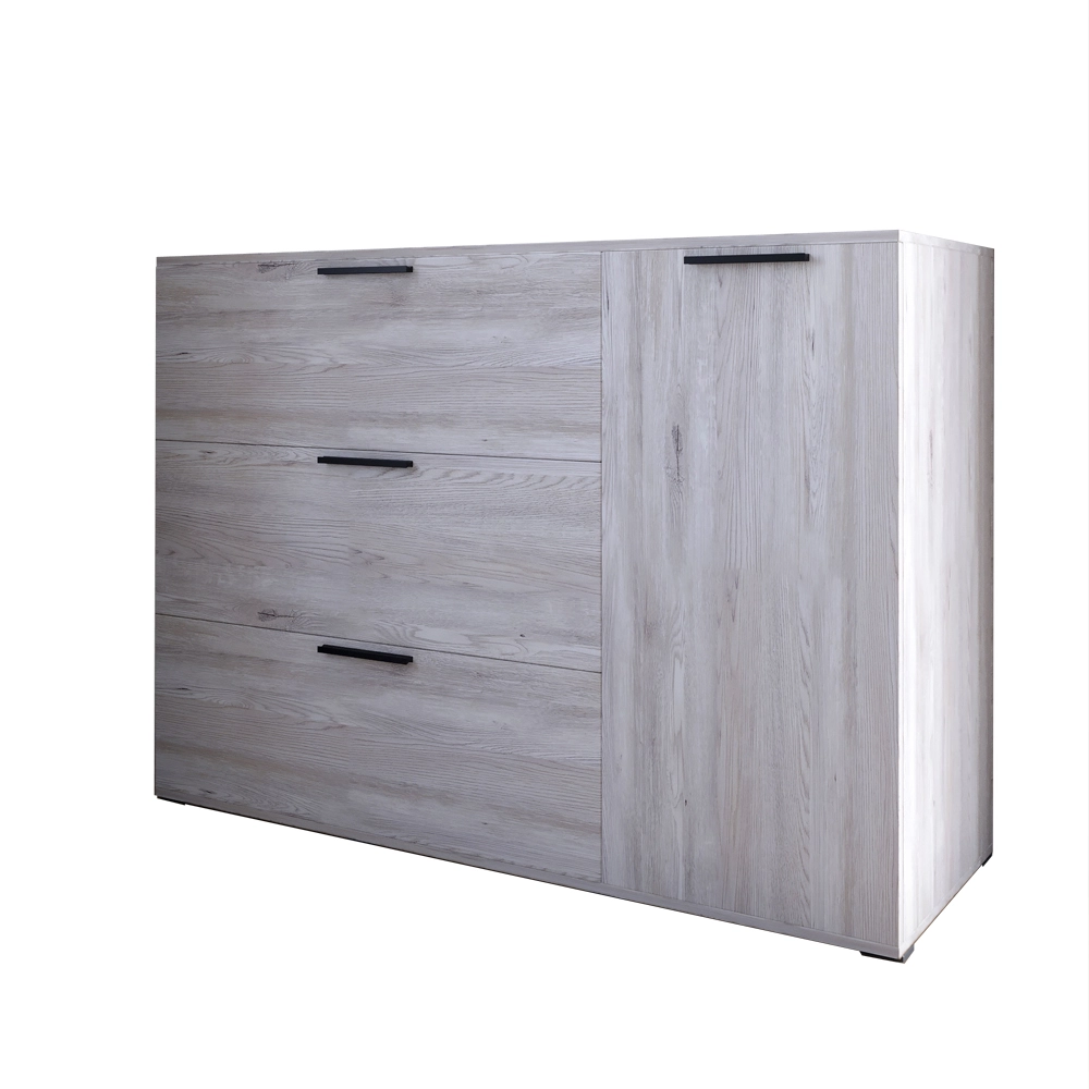Откройте для себя идеальное сочетание стиля и практичности с комодом LION Краш. Его современный дизайн с тремя выдвижными ящиками и закрытыми полками обеспечивает не только эстетичный вид, но и удобство в использовании. Дымчатый оттенок Самоа придает элегантности, делая этот комод великолепным дополнением в любую комнату.