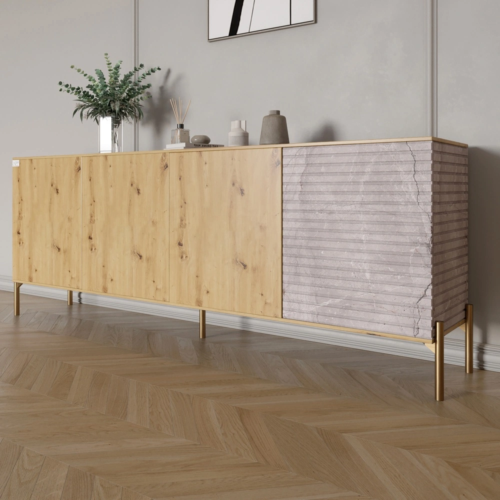 Комод на золотих металевих ніжках LION Грей 204x38x76,5 см Дуб Артизан/Камінь (LION-042685)