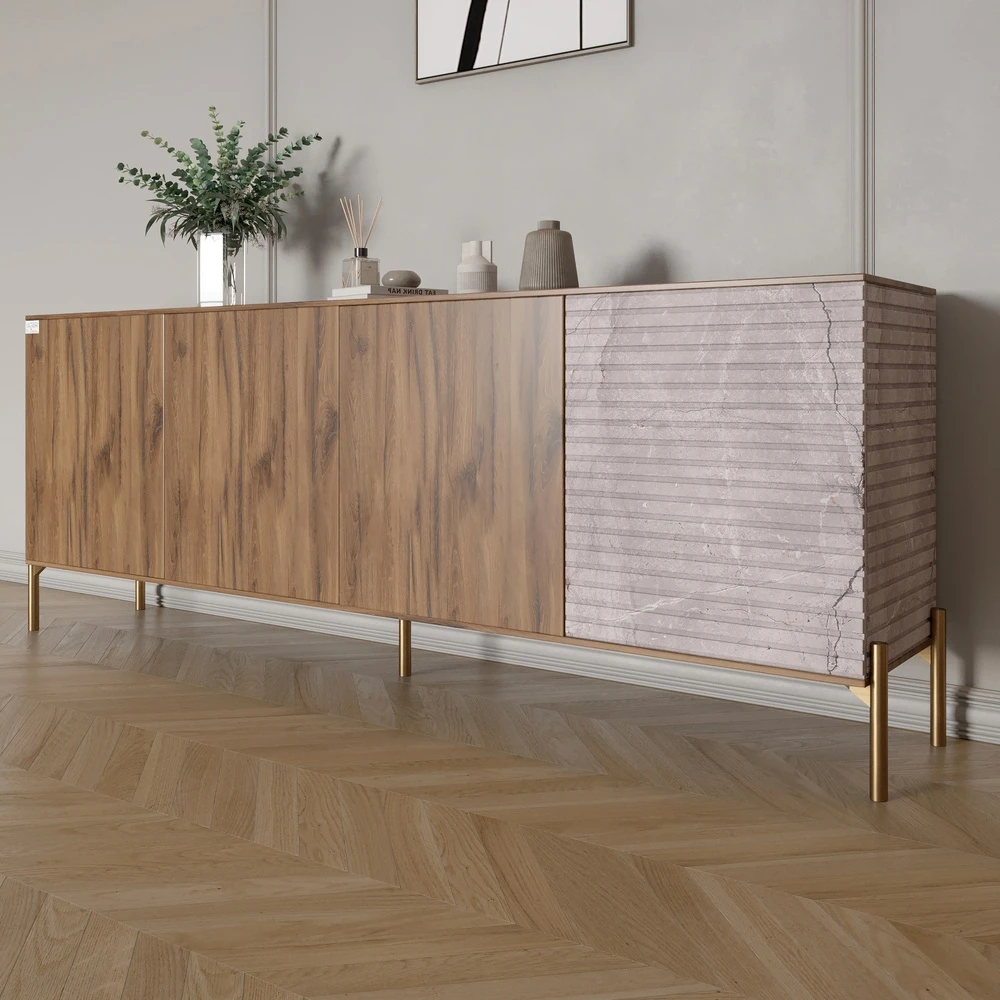 Комод на золотих металевих ніжках LION Грей 204x38x76,5 см Дуб Ліворно/Камінь (LION-042686)