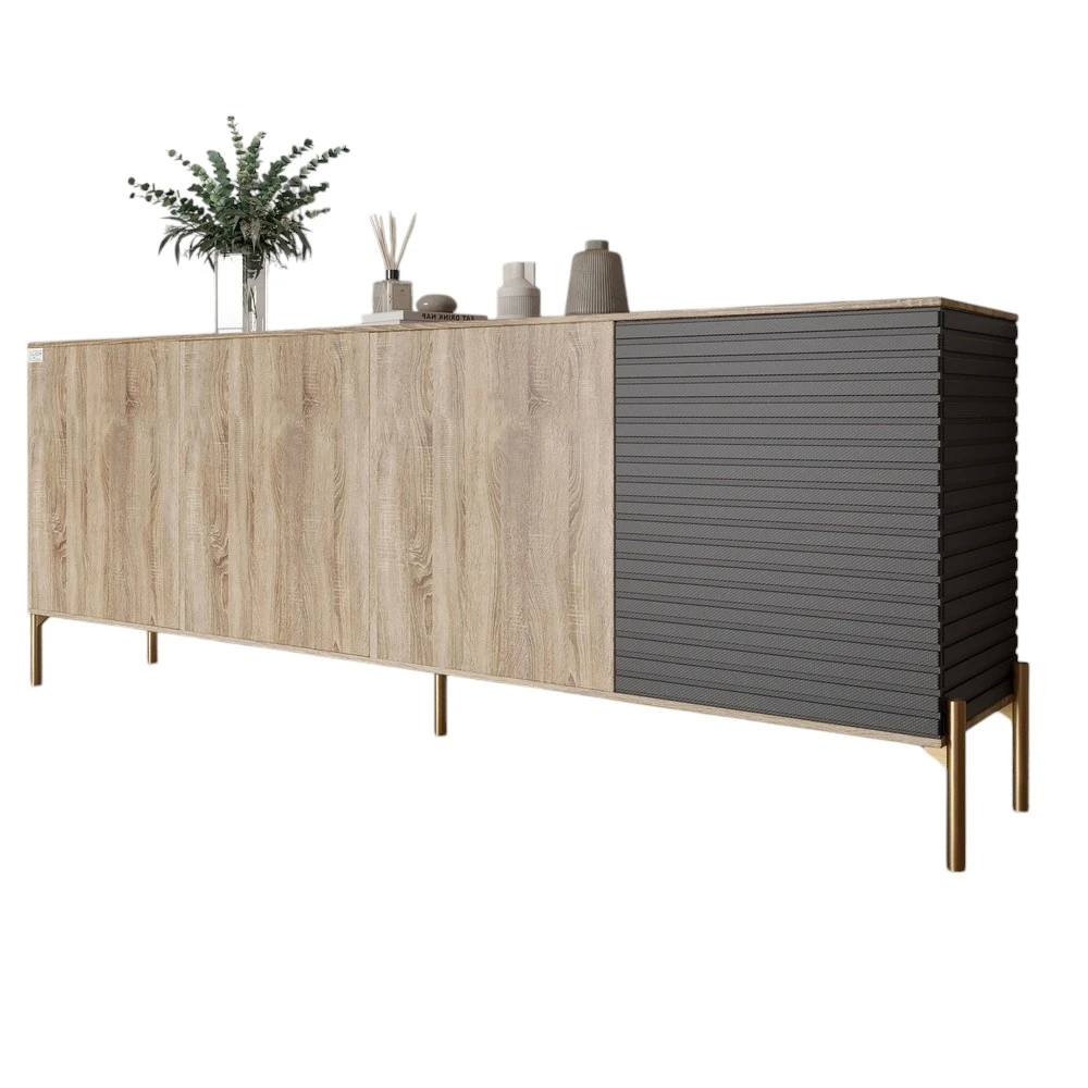 Комод на золотих металевих ніжках LION Грей 204x38x76,5 см Дуб сонома трюфель/Асфальт (LION-042667)