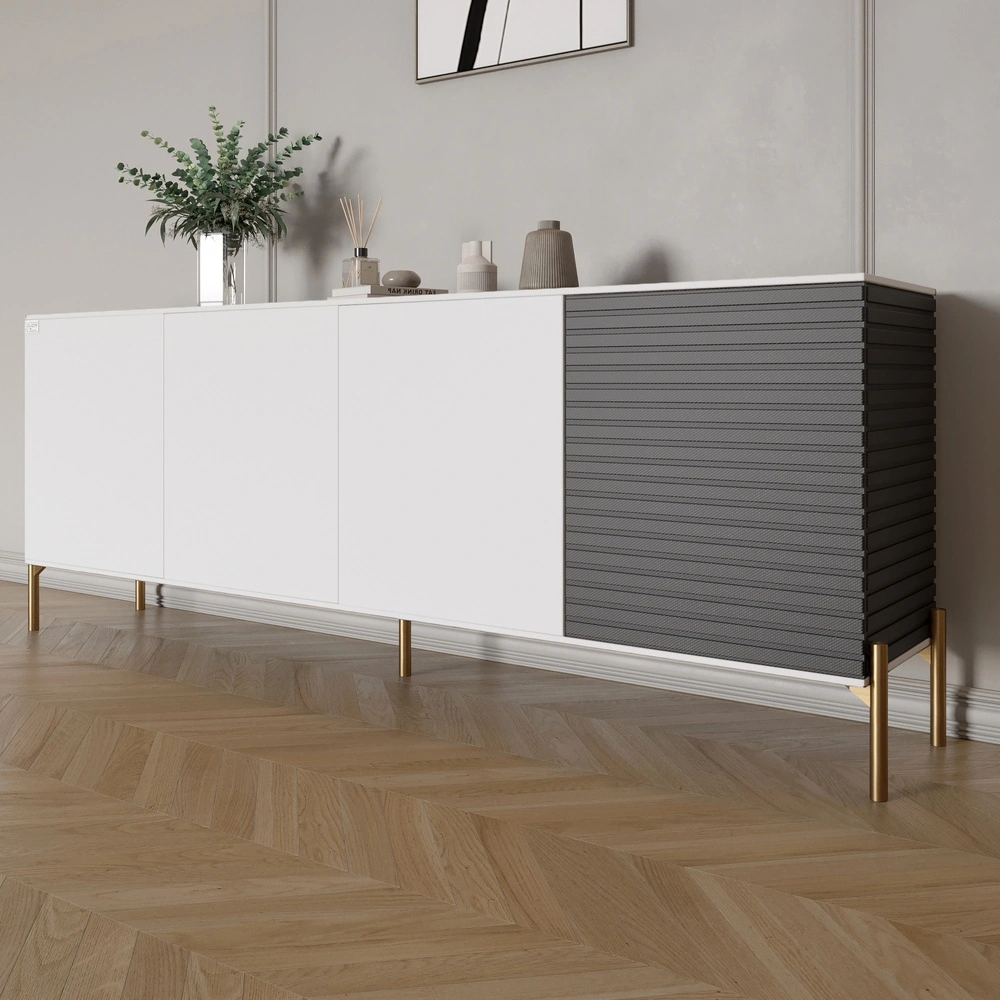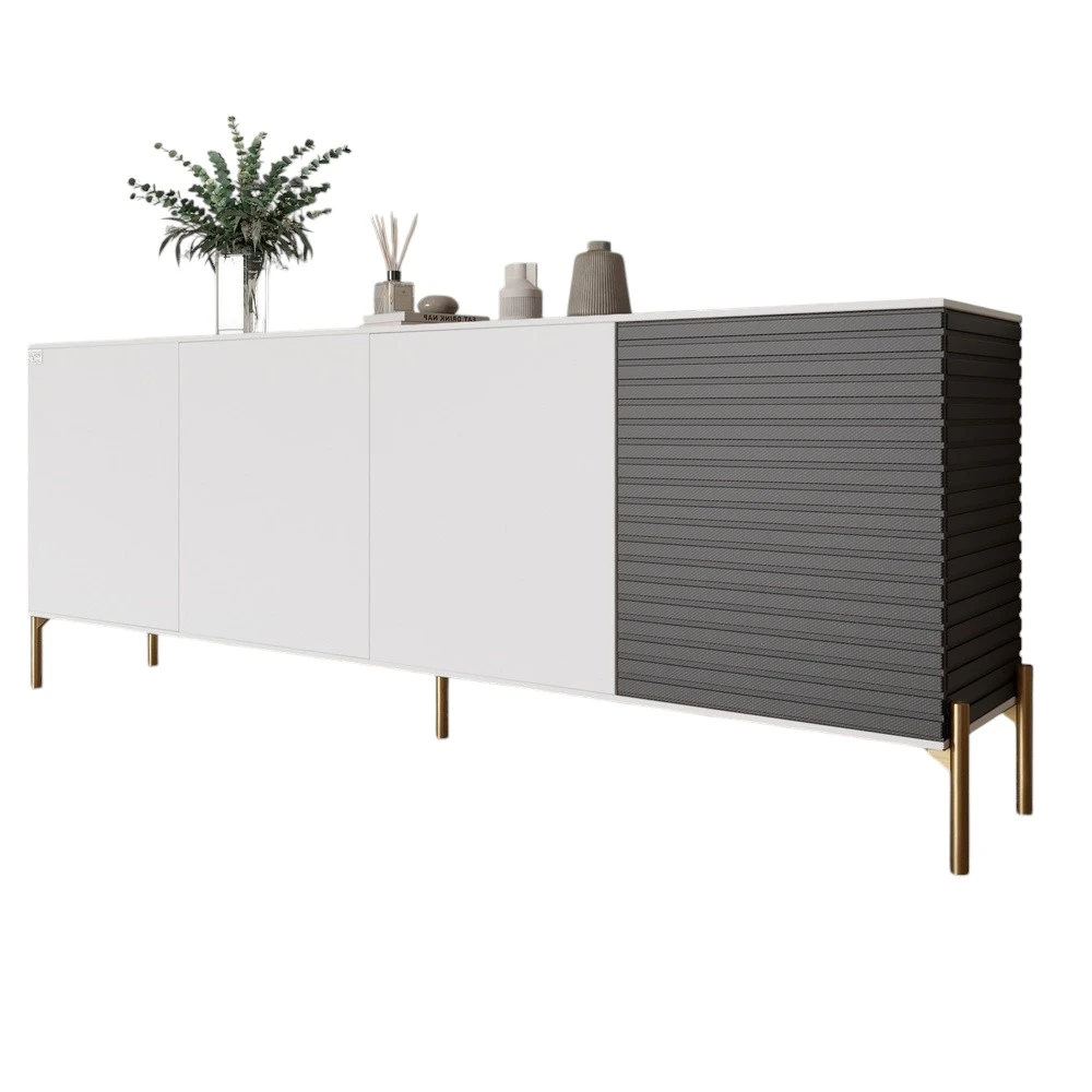 Комод на золотих металевих ніжках LION Грей 204x38x76,5 см Німфея Альба (білий)/Асфальт (LION-042668