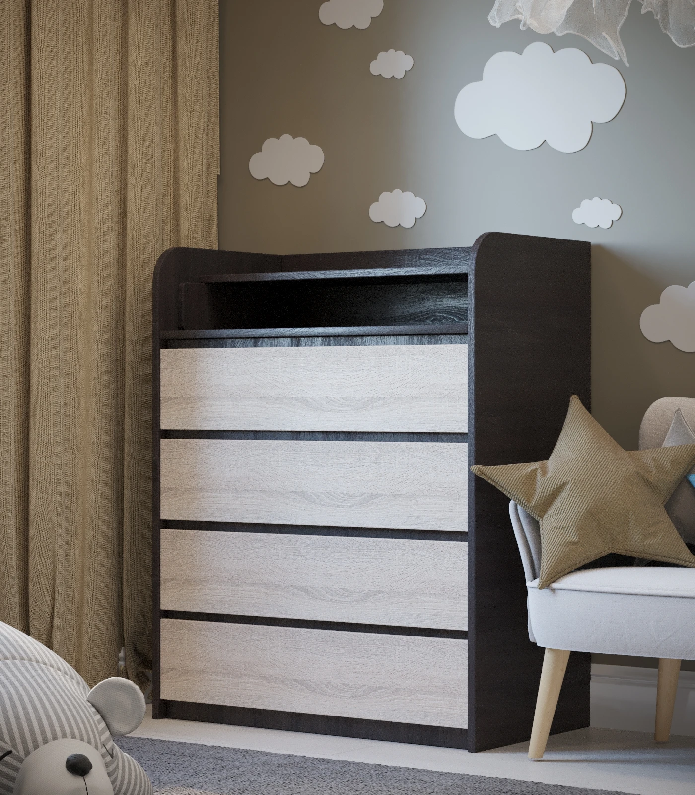 Відкрийте для себе ідеальне рішення для організації простору вашої дитини з комодом пеленальним Еверест. Його стильний дизайн у відтінках венге та дуба молочного не лише доповнить інтер'єр, але й стане практичним помічником у догляді за малюком. Завдяки телескопічним шухлядам, ви зможете легко зберігати усі необхідні речі, забезпечуючи швидкий доступ до них у будь-який момент.