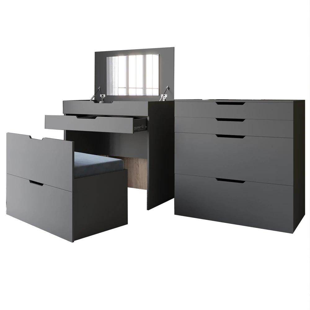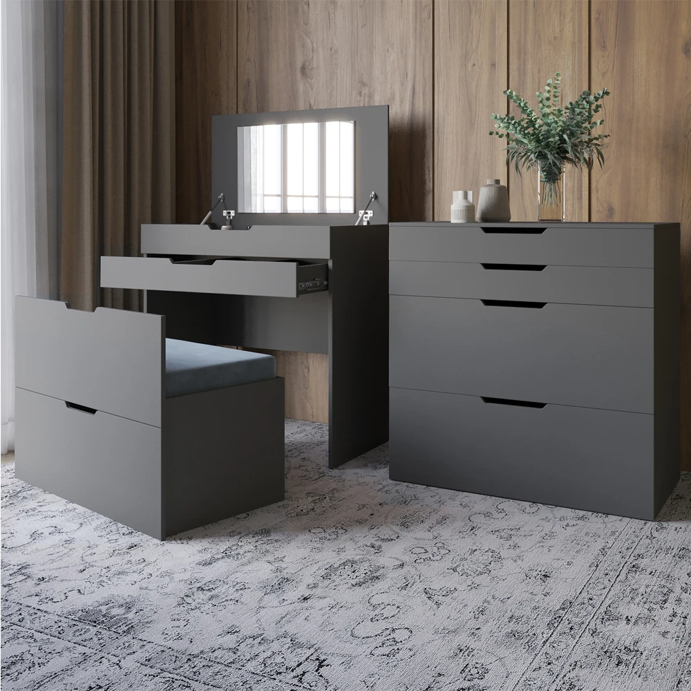 Комод-трюмо із дзеркалом, нішею під сидінням та шухлядою LION Азія Антрацит (LION-041662) ТОП