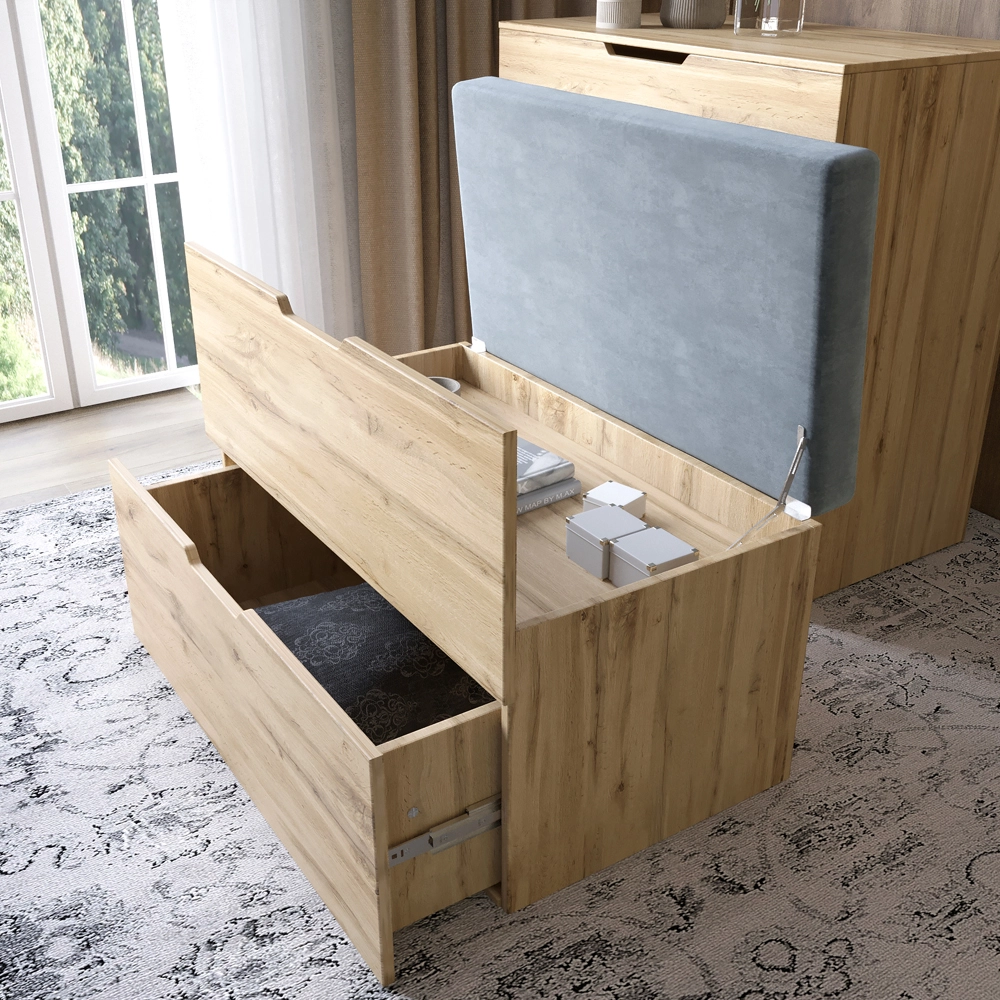 Комод-трюмо не только украшает комнату, но и выполняет множество функций. Оснащенный зеркалом, он идеально подходит для создания образа перед выходом из дома. Ниша под сиденьем обеспечивает дополнительный комфорт, а ящик позволяет хранить необходимые вещи в порядке, что делает его незаменимым в вашем доме.