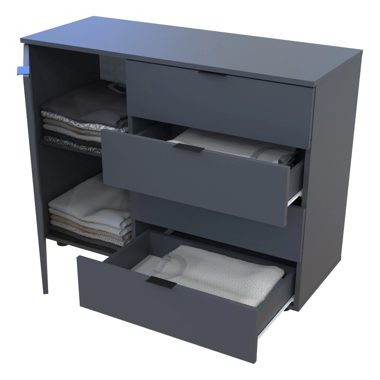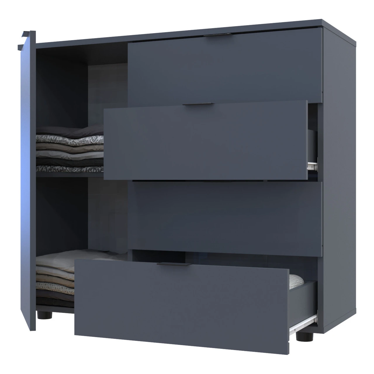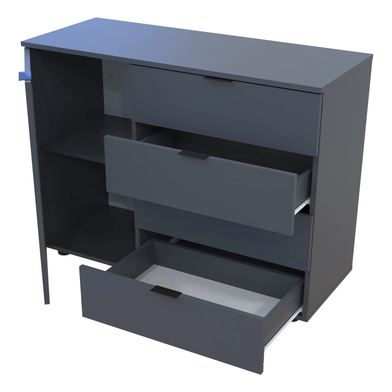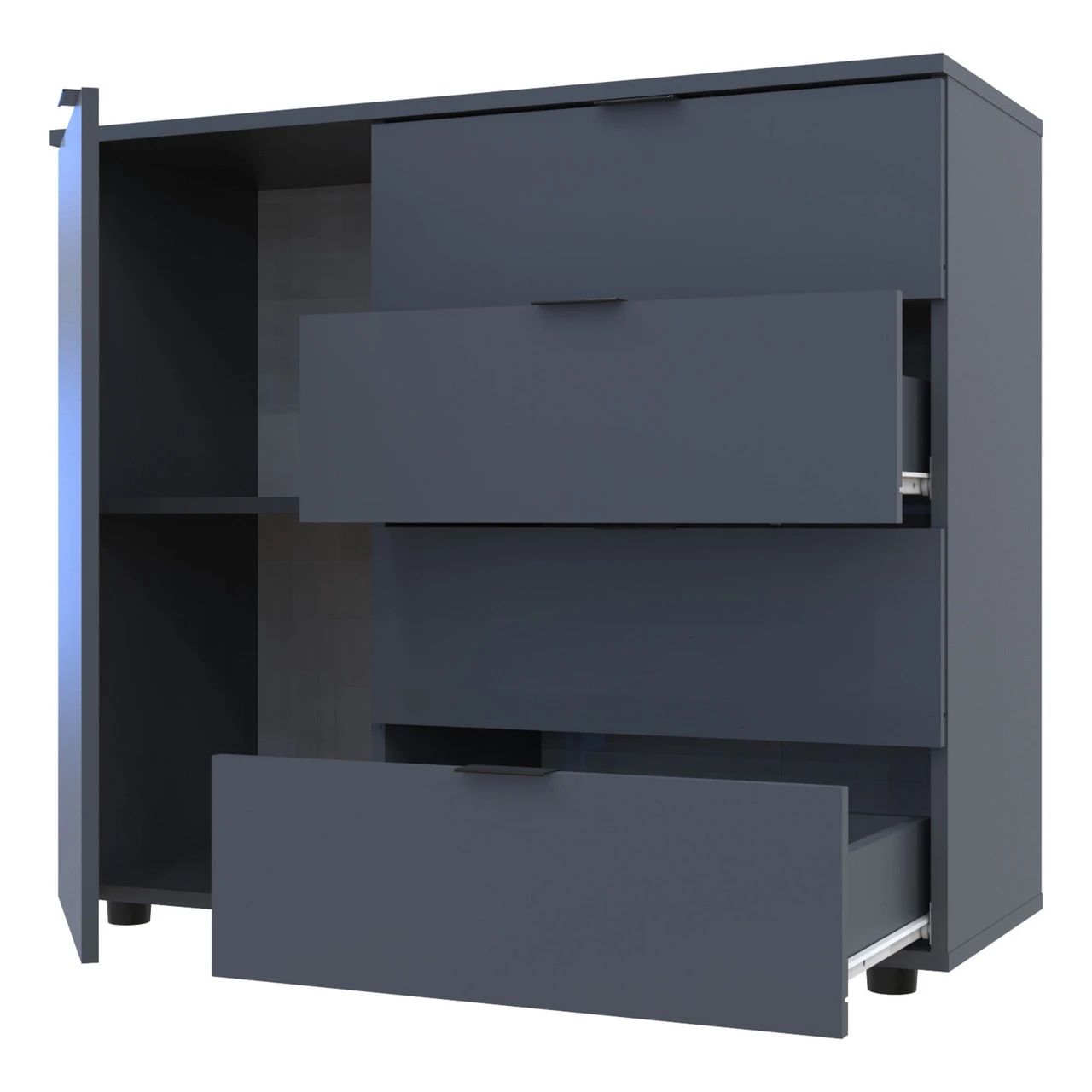 Шукаєте стильний та функціональний меблевий елемент для вашої вітальні? Комод у вітальню Doros Гелар GС1 — це ідеальне рішення, яке поєднує в собі сучасний дизайн та практичність. Завдяки своїм компактним розмірам та елегантному графітовому кольору, цей комод легко впишеться в будь-який інтер'єр, додаючи йому шарму та вишуканості.