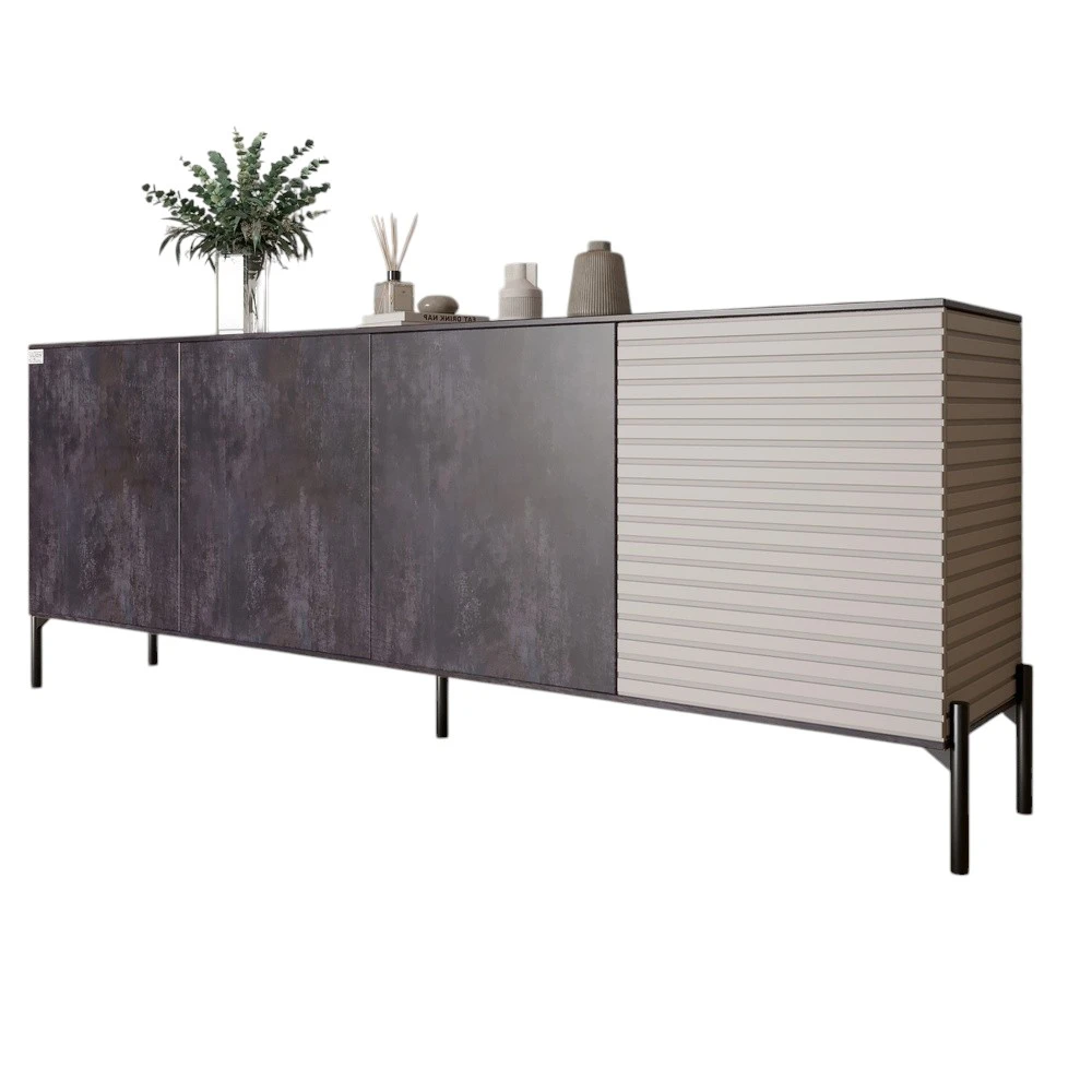 Комод у вітальню на чорних металевих ніжках LION Грей 204x38x76,5 см Бетон темний/Кашемір (LION-0426