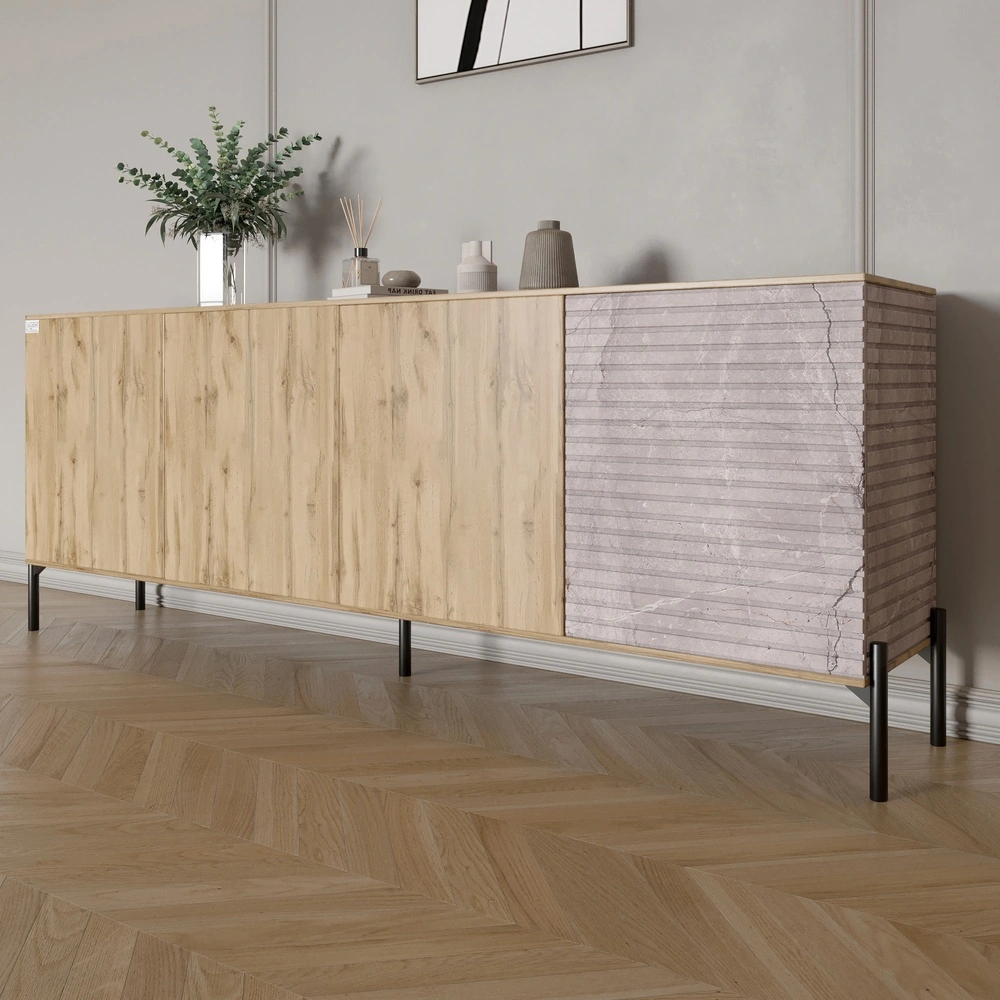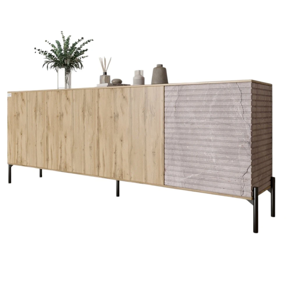 Комод у вітальню на чорних металевих ніжках LION Грей 204x38x76,5 см Дуб Аппалачі/Камінь (LION-04262