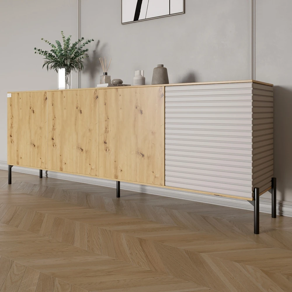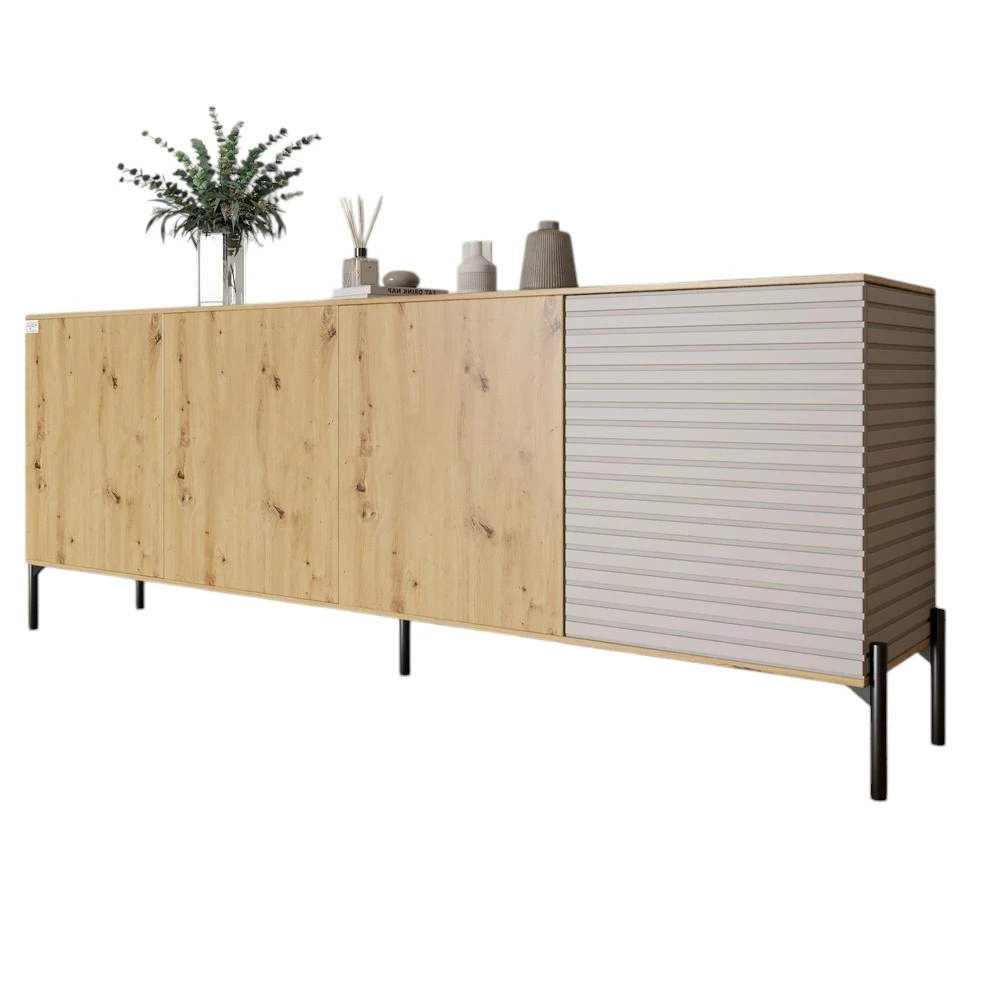 Комод у вітальню на чорних металевих ніжках LION Грей 204x38x76,5 см Дуб Артизан/Кашемір (LION-04262