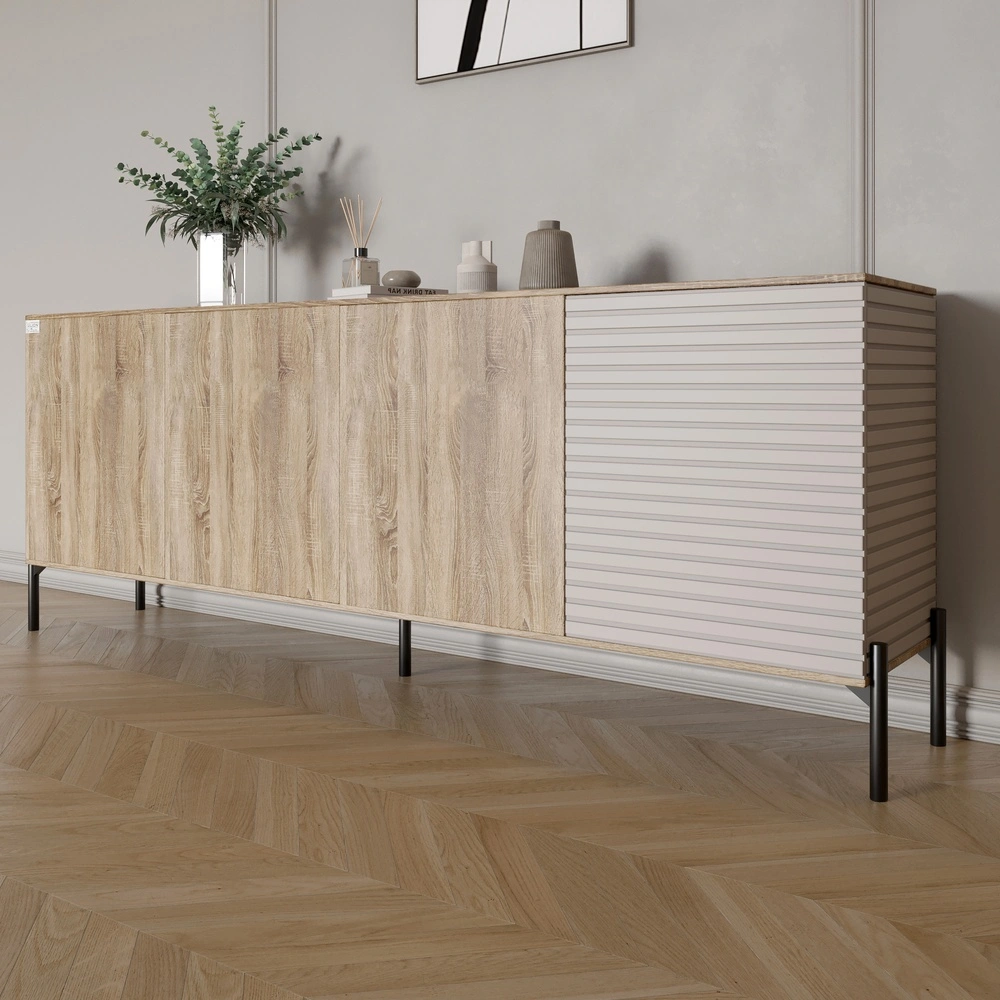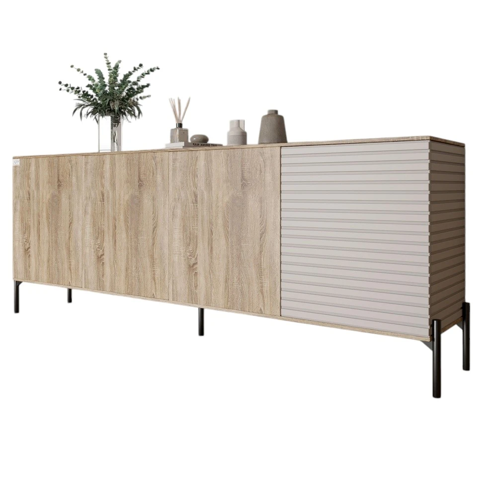 Комод у вітальню на чорних металевих ніжках LION Грей 204x38x76,5 см Дуб сонома трюфель/Кашемір (LIO