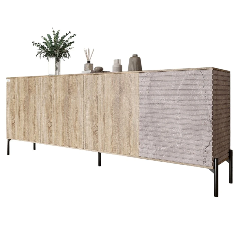Комод у вітальню на чорних металевих ніжках LION Грей 204x38x76,5 см Дуб сонома/Камінь (LION-042609)