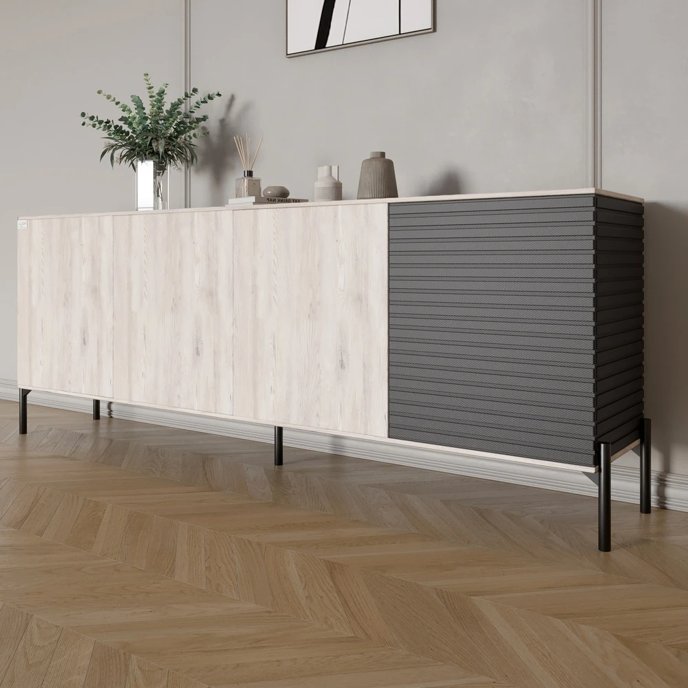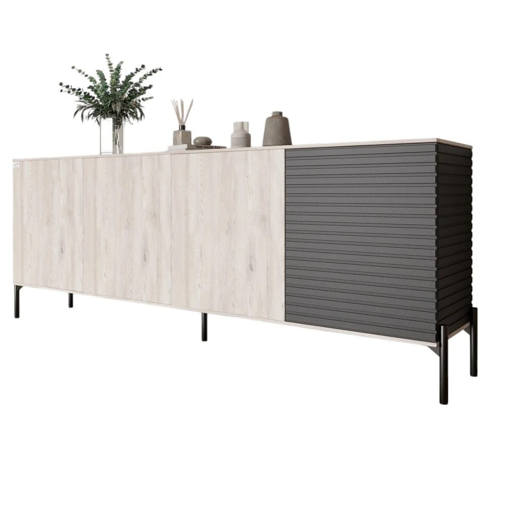 Комод у вітальню на чорних металевих ніжках LION Грей 204x38x76,5 см Самоа Димчастий/Асфальт (LION-0
