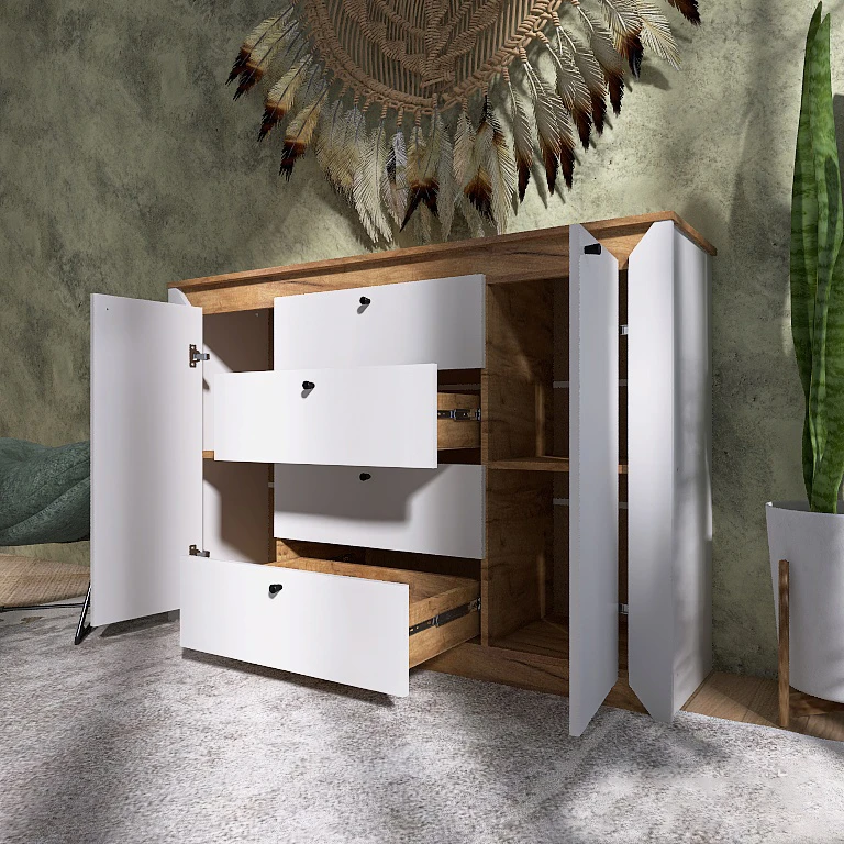 Шукаєте ідеальне рішення для організації простору у вашій спальні? Комод Еверест Нордік - це не просто меблі, а справжня знахідка для тих, хто цінує стиль і практичність. Його сучасний дизайн у поєднанні з білим кольором та елементами дуба крафт золотого робить його універсальним доповненням до будь-якого інтер'єру. Завдяки своїм компактним розмірам, комод легко впишеться навіть у найменші приміщення, надаючи вам додатковий простір для зберігання.