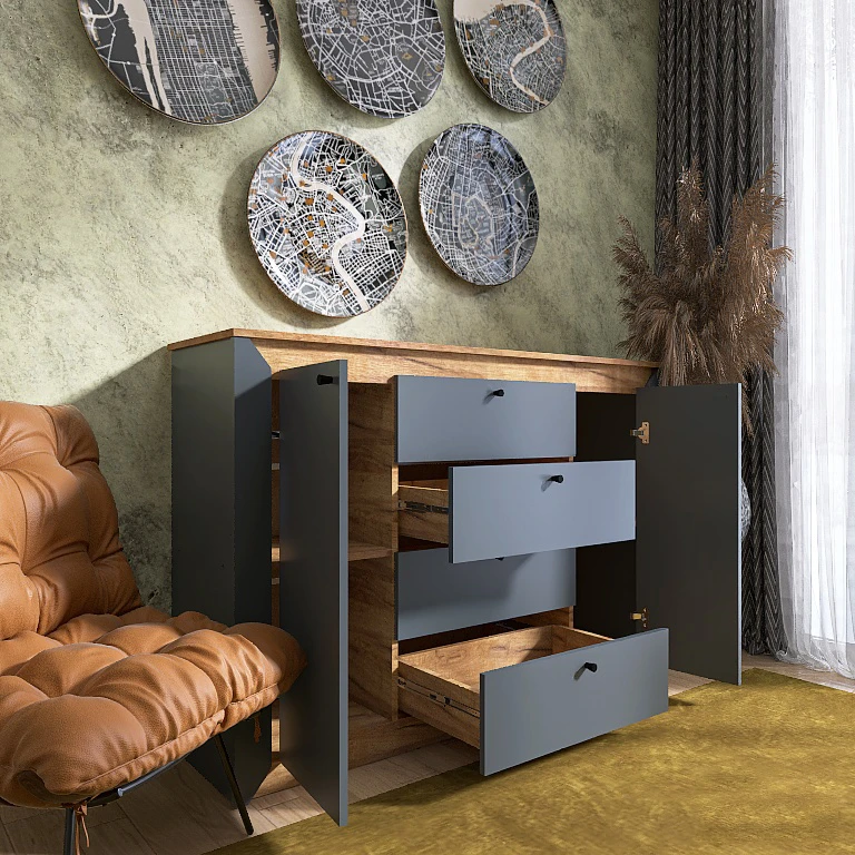Комод в спальню Еверест Нордік-1400 140х38х95 см Графіт + Дуб крафт золотий (DTM-5532)