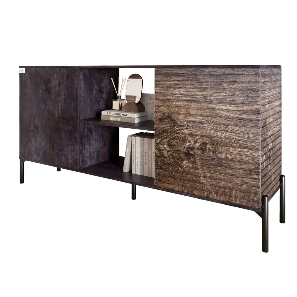 Комод відкритий на чорних металевих ніжках LION Грей Бетон темний/Дерево (LION-042759)