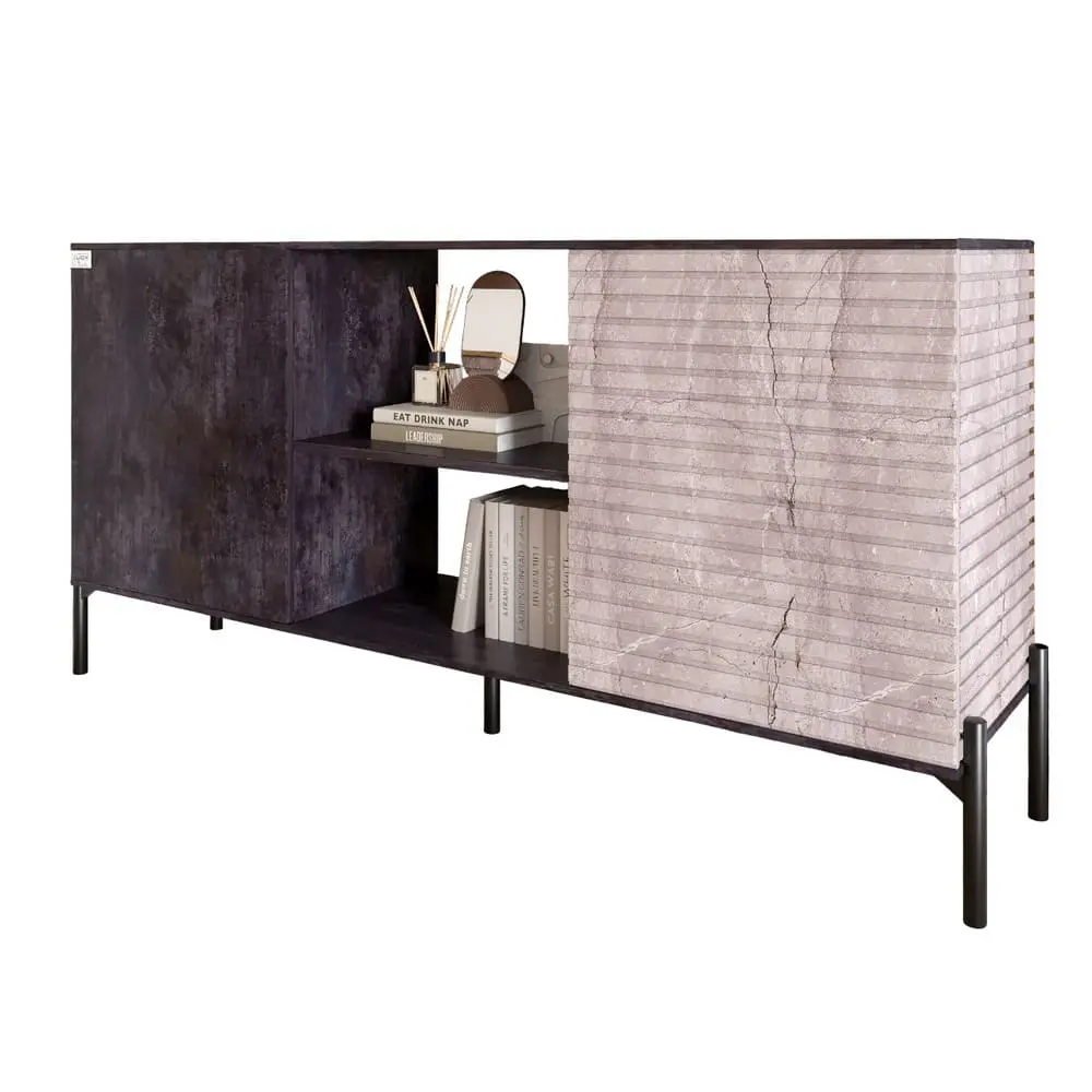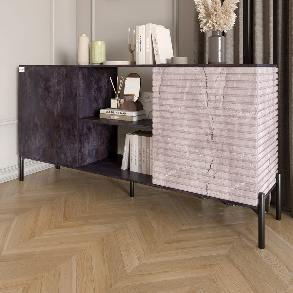 Комод відкритий на чорних металевих ніжках LION Грей Бетон темний/Камінь (LION-042790)