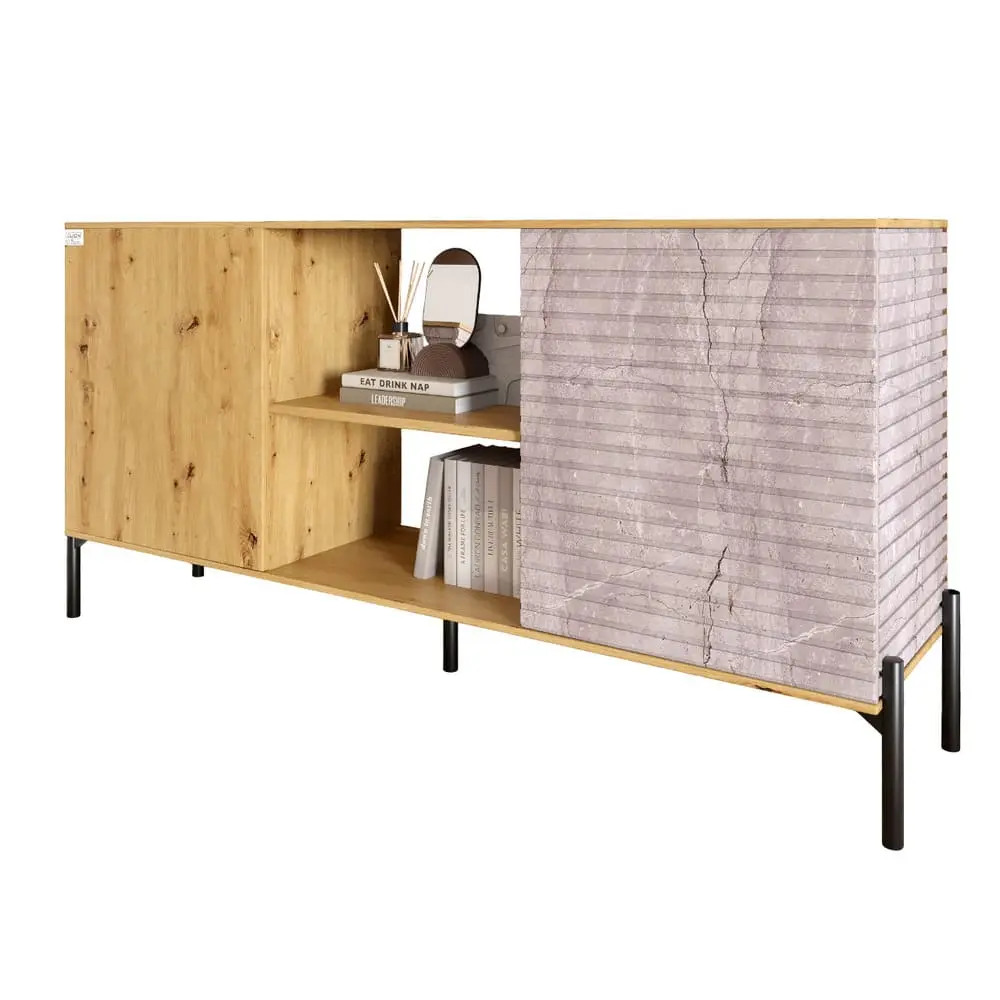 Комод відкритий на чорних металевих ніжках LION Грей Дуб Артизан/Камінь (LION-042793)