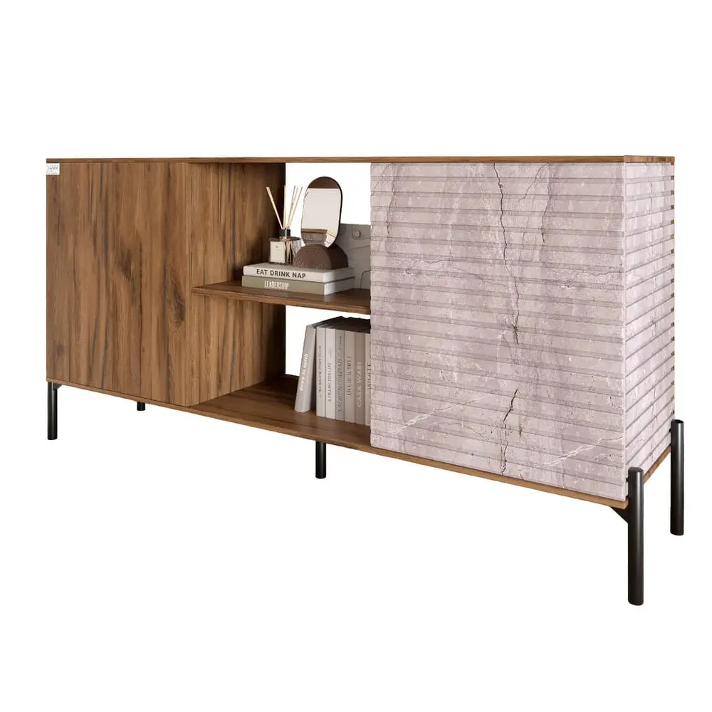 Комод відкритий на чорних металевих ніжках LION Грей Дуб Ліворно/Камінь (LION-042794)