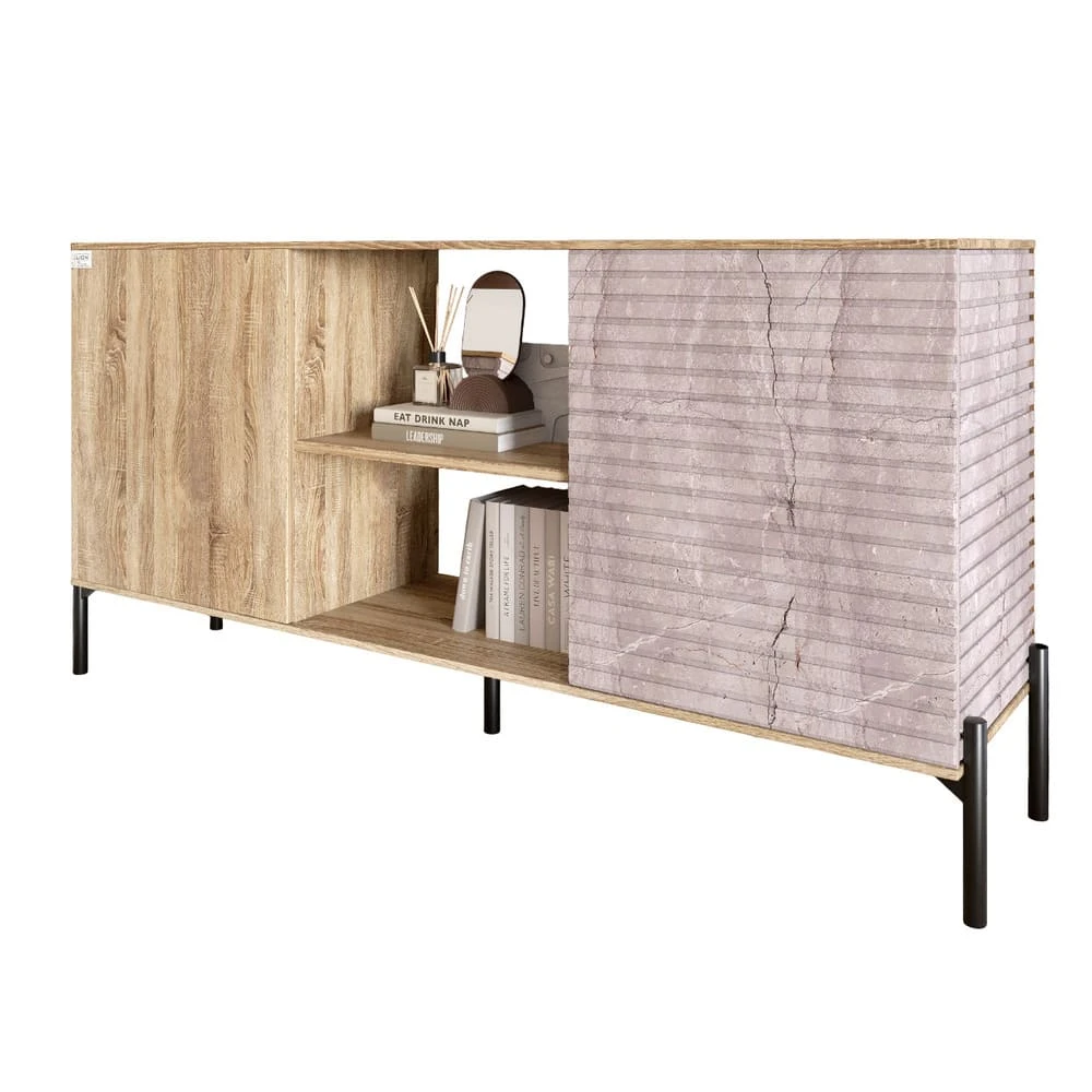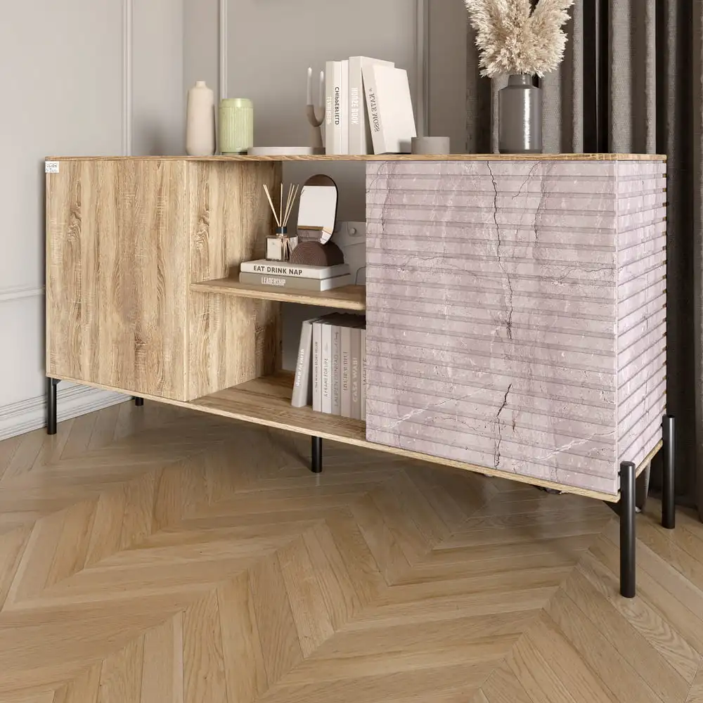 Этот комод изготовлен из ЛДСП SWISS KRONO, известного своей прочностью и стойкостью к механическим повреждениям, влаге и высоким температурам. Благодаря этому, ваша мебель будет сохранять свой эстетический вид на протяжении многих лет. Три функциональных отделения, включая закрытые полки для хранения вещей и открытые секции для книг и декора, обеспечивают организованность и комфорт. Минималистичный дизайн без выступающих ручек делает комод не только стильным, но и практичным, ведь он безопасен в использовании и легок в уходе.