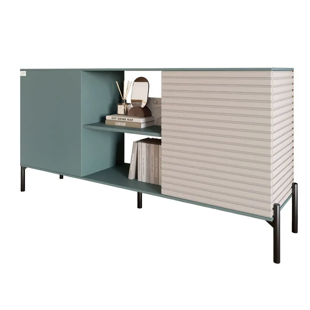 Комод из коллекции Грей - это идеальное решение для тех, кто ценит современный дизайн и практичность. Изготовлен из высококачественных материалов, он сочетает в себе элегантные формы и интересные текстуры, делающие его настоящим украшением вашего интерьера. Гладкий фасад в сочетании с текстурной секцией привлекает внимание и придает комод уникальности, а металлические ножки обеспечивают надежность и легкость конструкции.