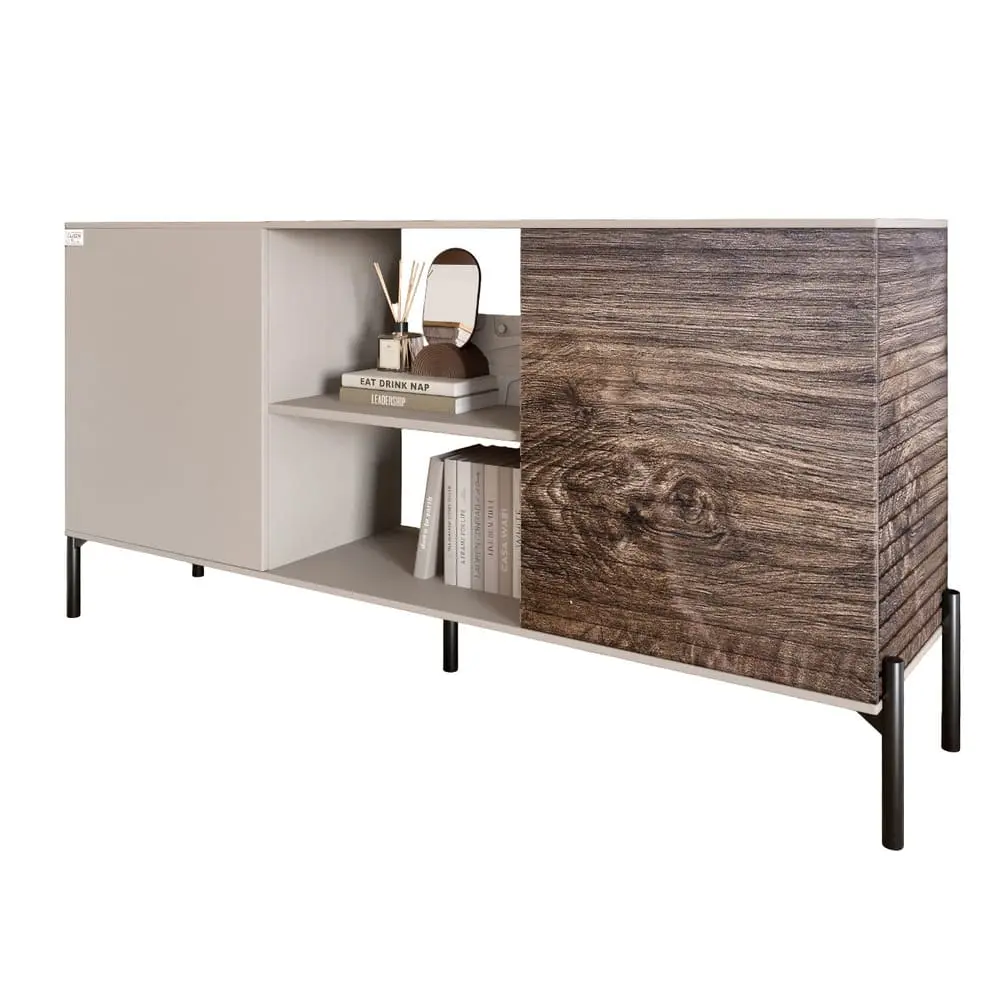 Комод відкритий на чорних металевих ніжках LION Грей Кашемір/Дерево (LION-042768)