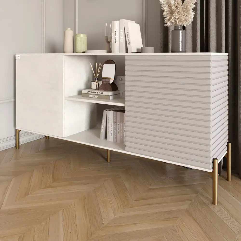 Открытый комод LION – это идеальное сочетание современного дизайна и функциональности. Его элегантный вид с золотыми металлическими ножками придает интерьеру изысканность, а стильная игра бетон и кашемир создают атмосферу уюта и комфорта.